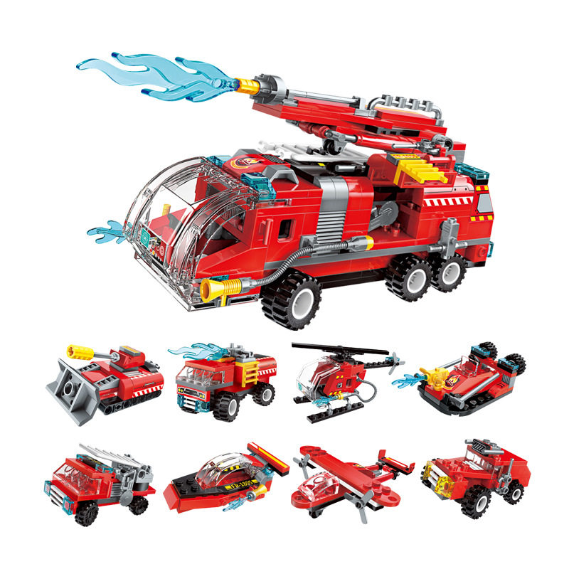 Enlightenment 1805 jet fire truck 8-in -1 set assembly model boy assembly building blocks assembly toy gift