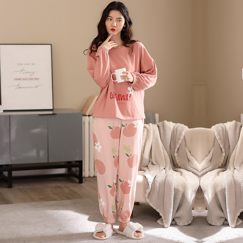 Sleepwear Lady Spring Autumn Season Pure Cotton Long Sleeves Slim full cotton Fall sweet and cute Exterior Wear home Two-style suit