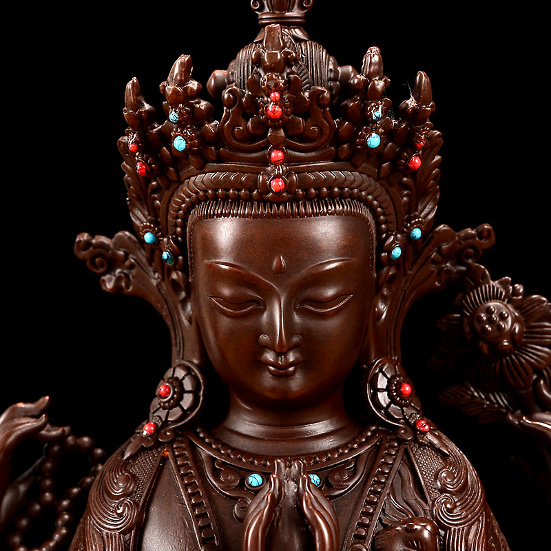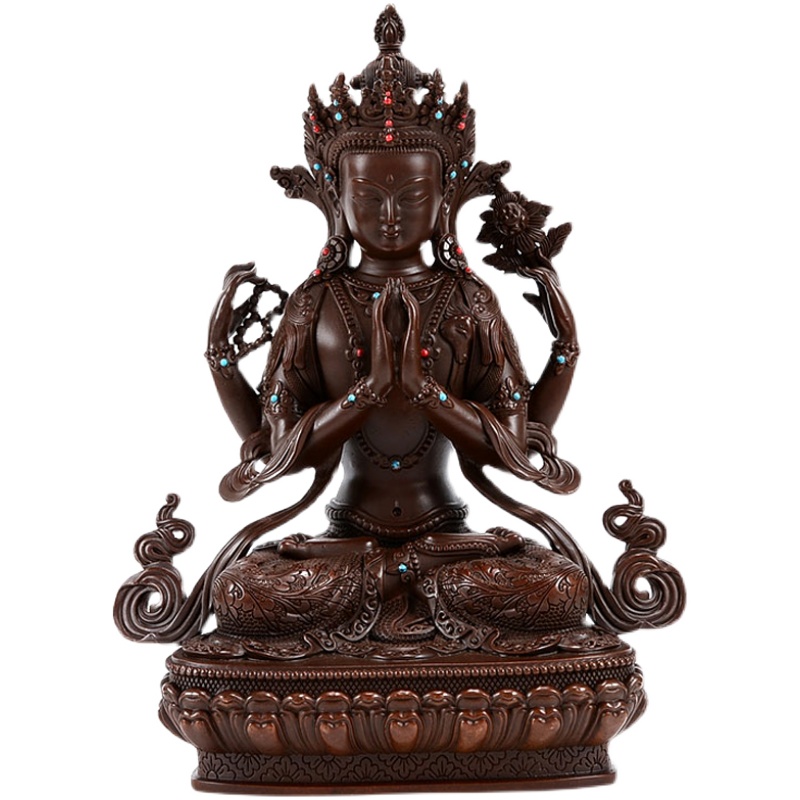 Four-arm Guanyin Taiwan ancient bronze Buddha statue Buddha Former home swing jewel dotted with dense Tibetan Buddhist statues of pure bronze Buddha