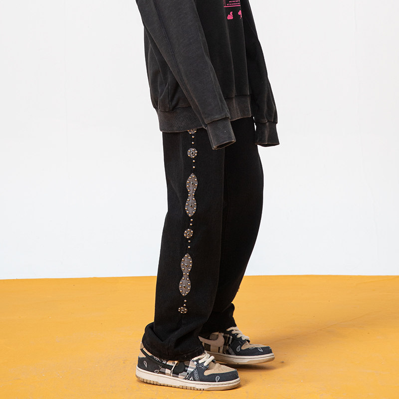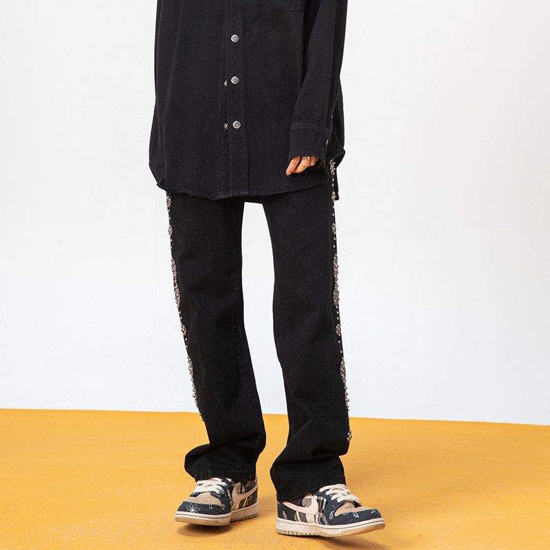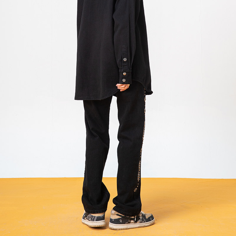 (Zhang Junhao Tongan) New factors Tide Cards Naughty Gold Electric Warm Bag Stone Straight Barrel Jeans Men High Street Pants