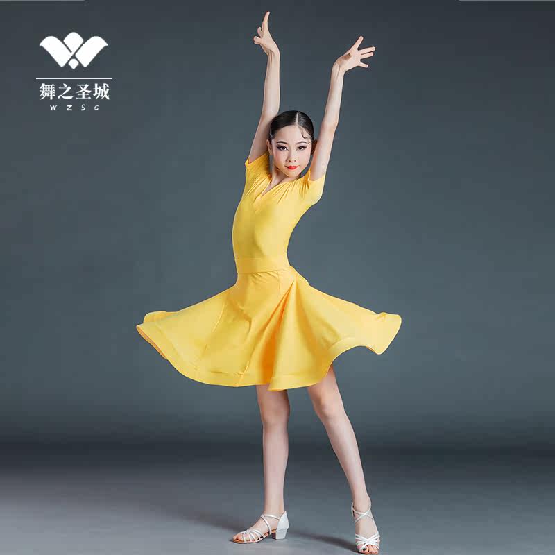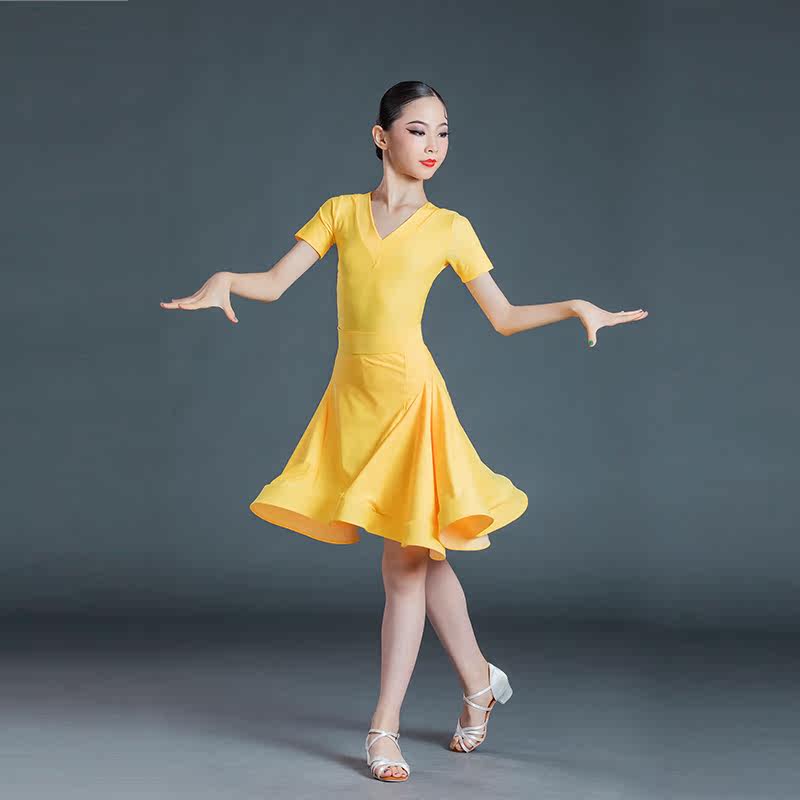 Children's Latin dance clothes summer children's Latin dance skirt short-sleeved dance clothes one-piece practice clothing girls 2021 new