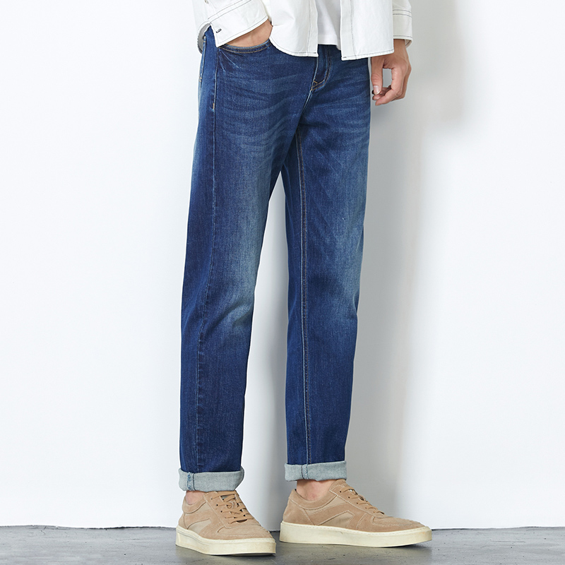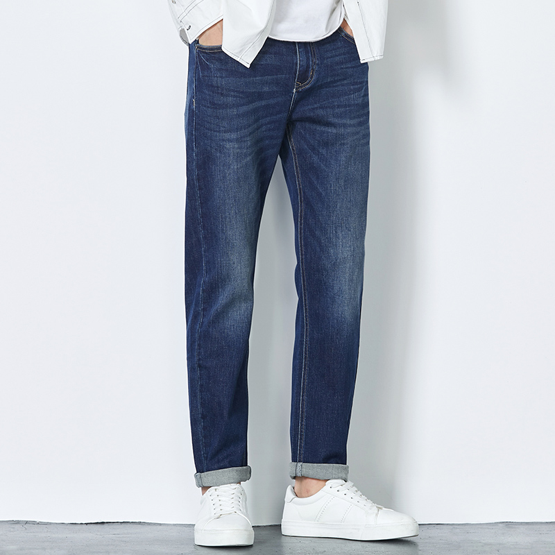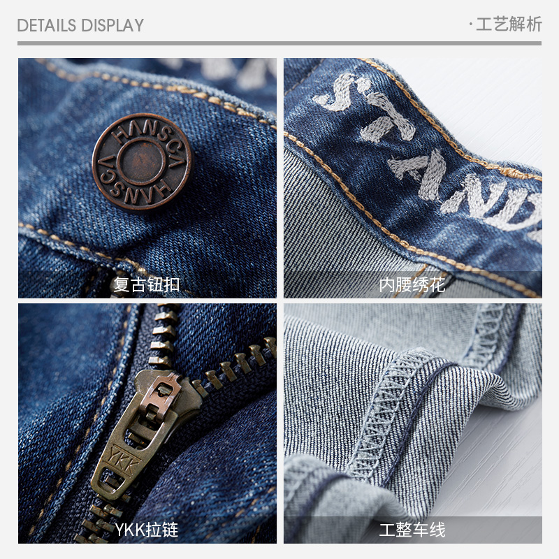 Hanska 2021 fall Heavy work washed in jeans men's retro dark blue loose straight cylinder casual long pants