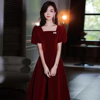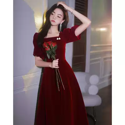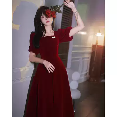 Toast service bride bride 2021 new wine red usually can wear summer engagement dress French retro return