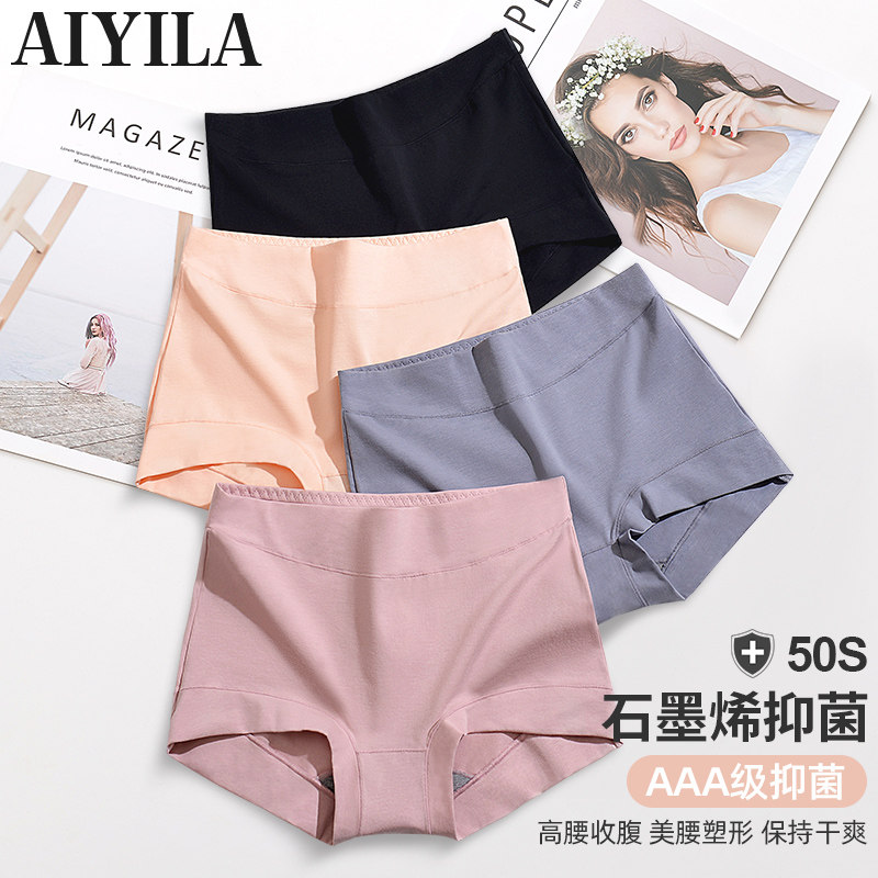 Large size underpants lady High waist pure cotton antibacterial and breathable graphene crotch 4-corner pants head plus fattening up 200 catty