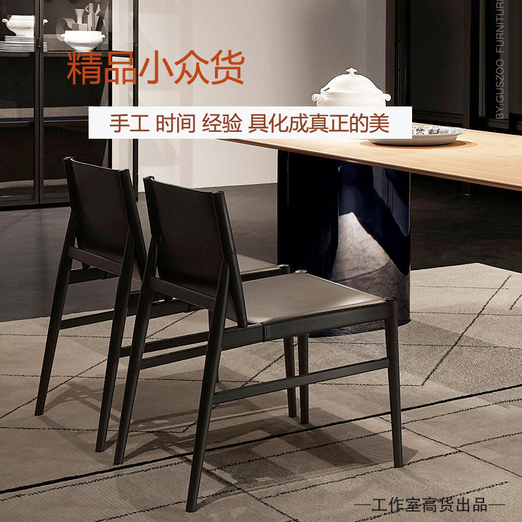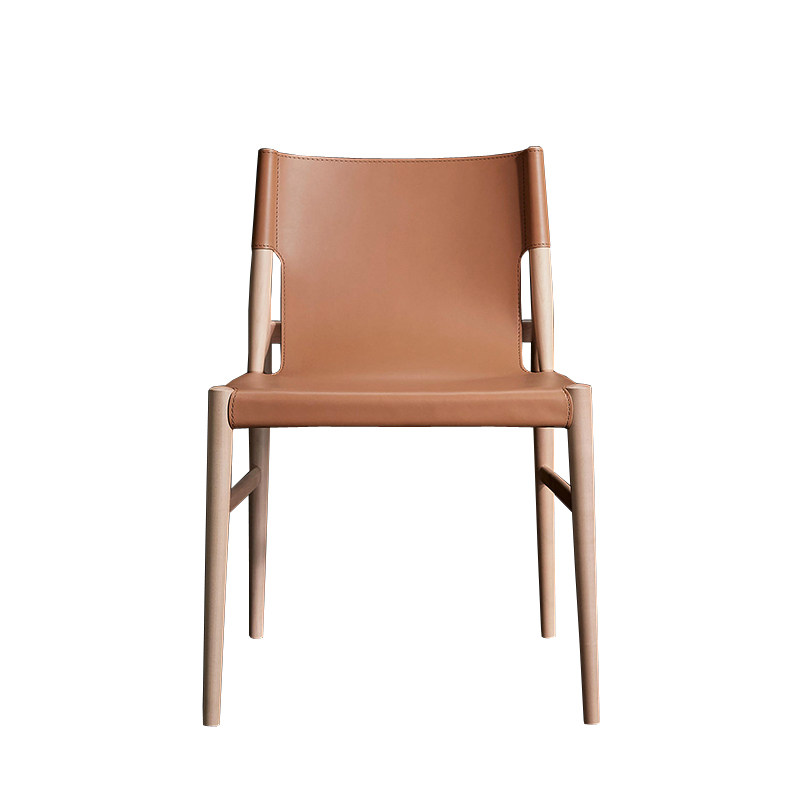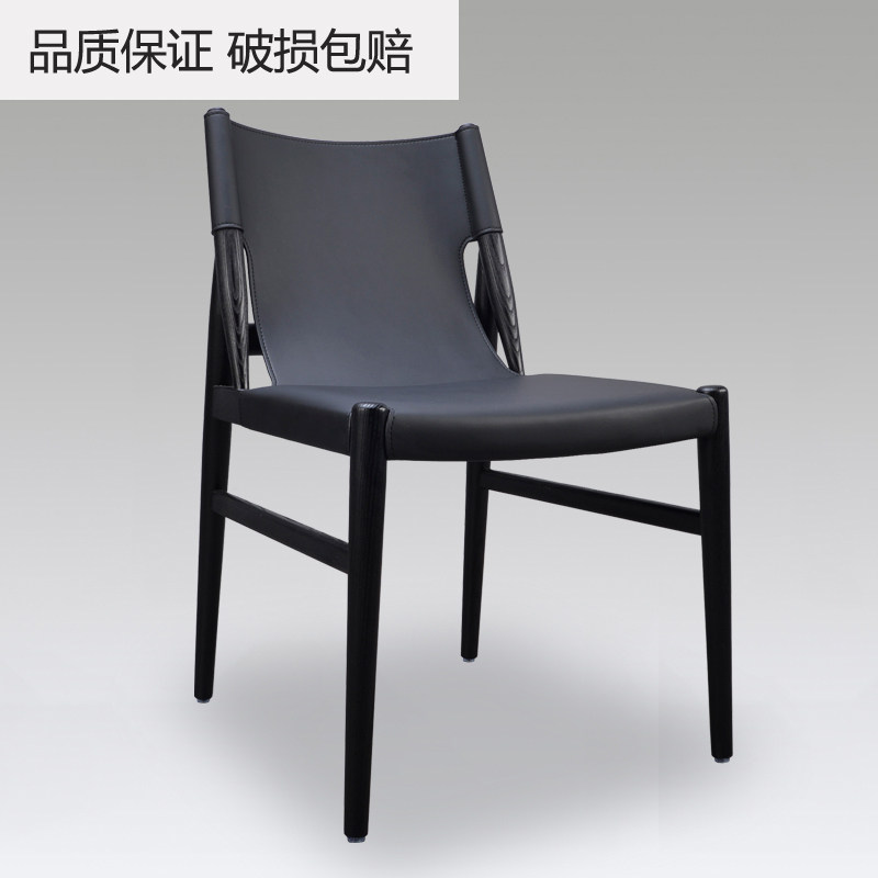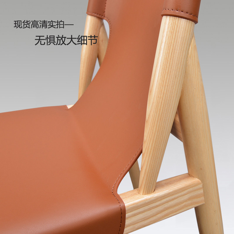 Nordic solid wood dining chair Italian light luxury home study minimalist ash leather chair designer saddle chair