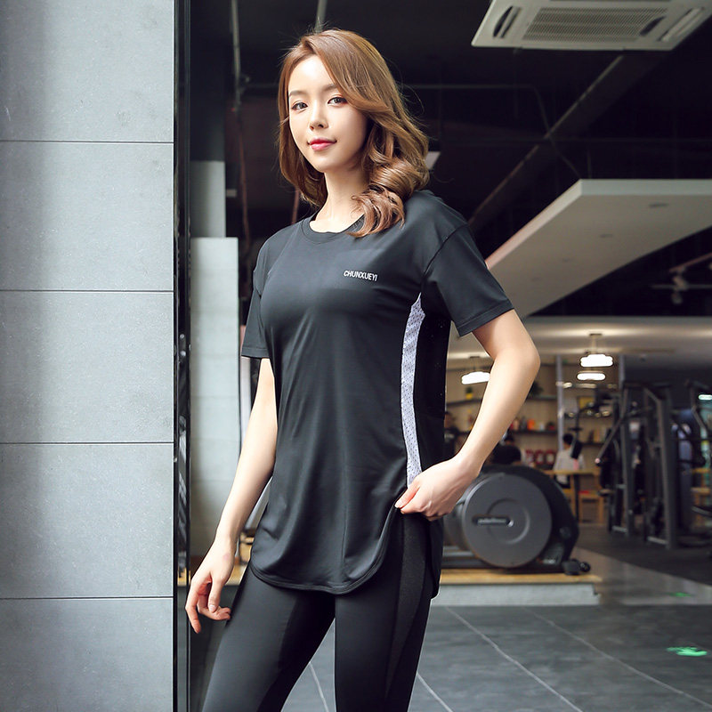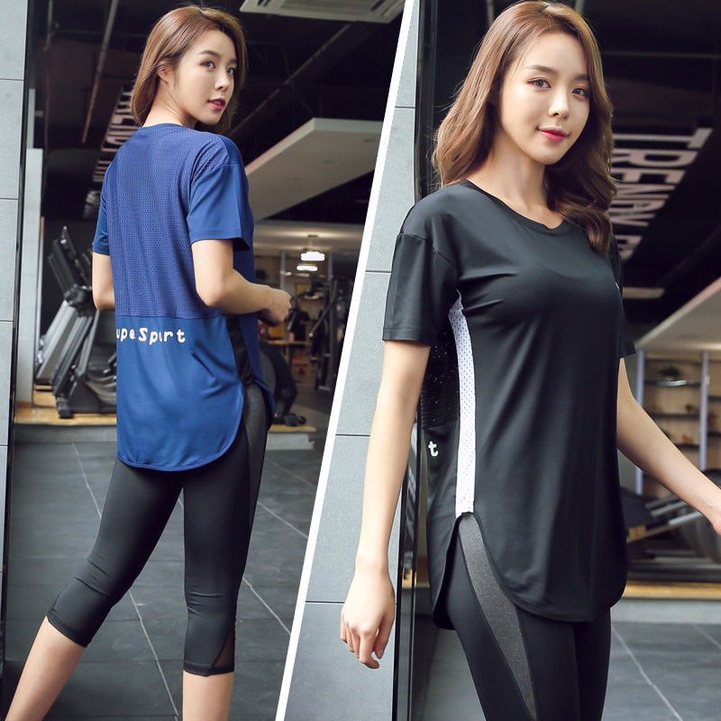 Loose yoga clothes women's quick-drying clothes large size gym sports short-sleeved slimming summer fat mm hip-covering running suit