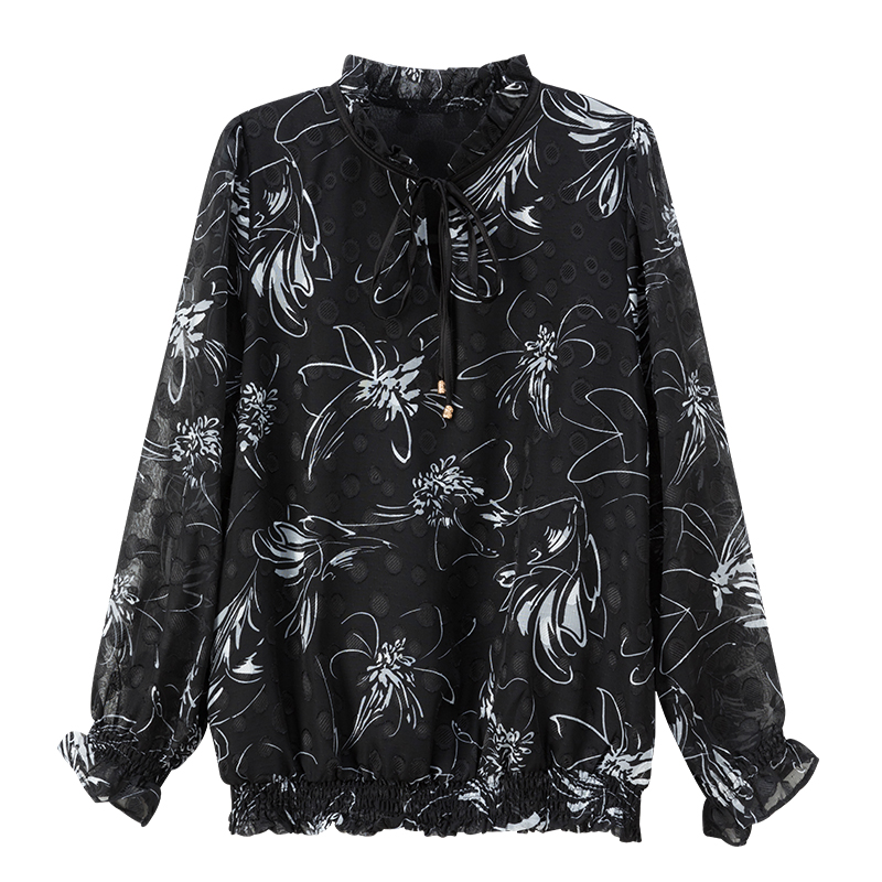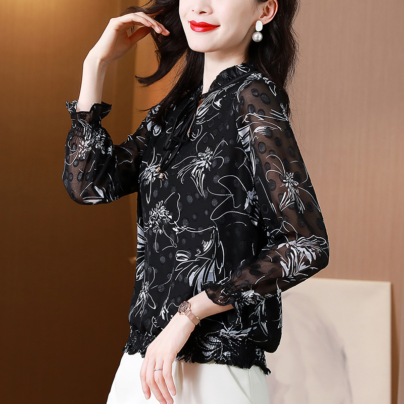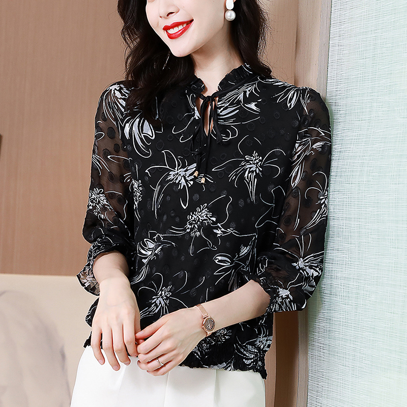 Mom Autumn Clothing Black Crushed Flowers Snowspun Shirt Woman Long Sleeve Fall 2022 New Stylish Upscale Foreign Pie Blouse Blouse