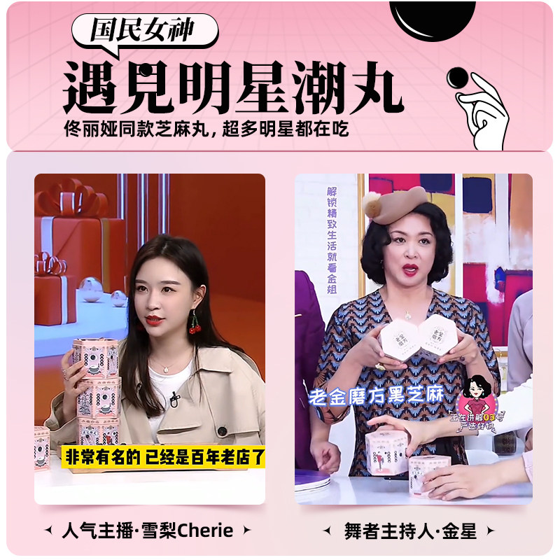 (Tong Lia's same gift box) Old gold milling square black Sesame Balls Rose Balls Milk Calcium Coconut Pulp Sesame Balls for friends and relatives