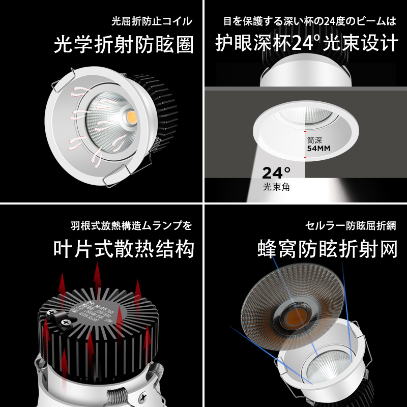 7W high display (4000k) (matt black reflective cup) (whole aluminium) 12W high display color (3000k) (matt black reflective cup) (through body full aluminum) 10W high display color (