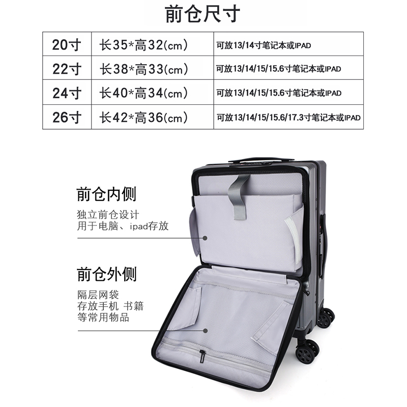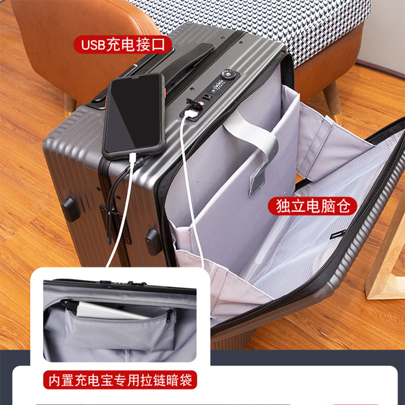 Business side open suitcase Men and women aluminum frame Lalever box 20 inch Den case 24 multifunction suitcase password leather case