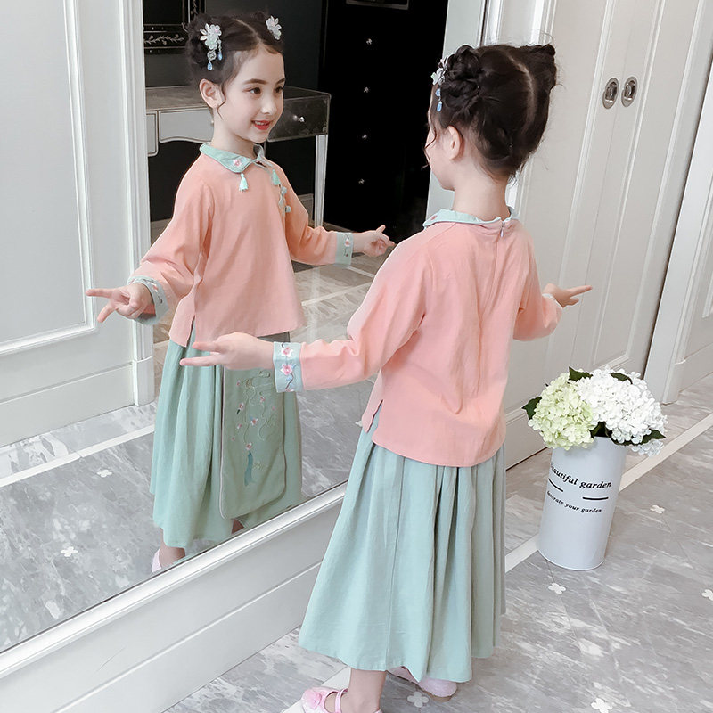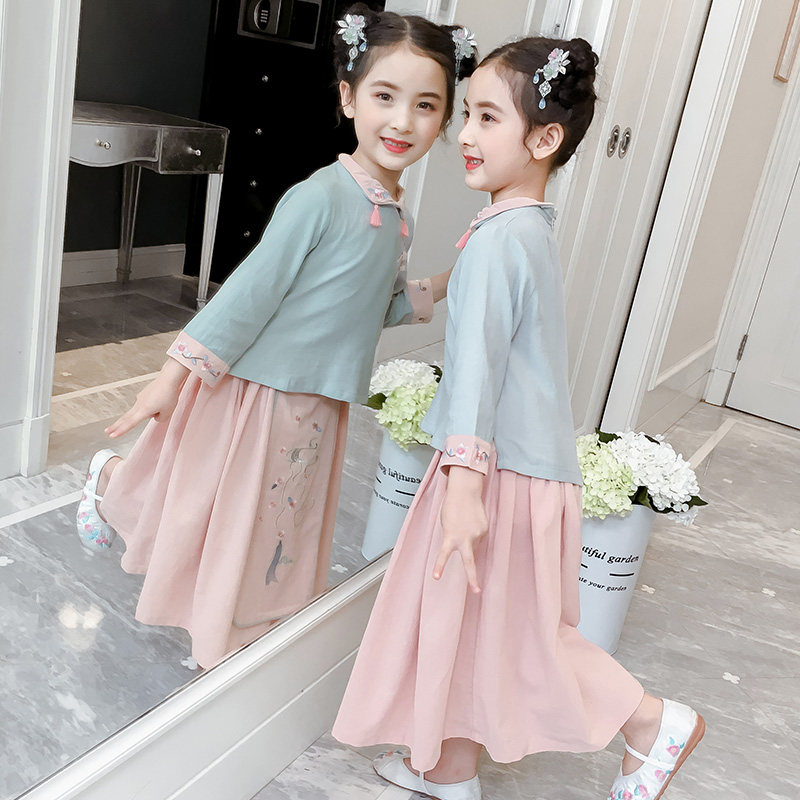 Girls' Spring and Autumn Festival Dress Girl girls CUHK Children's suit Yankees Internet Red Hanksuit 6 Princess Dresses 7 Chauts 8 years 9