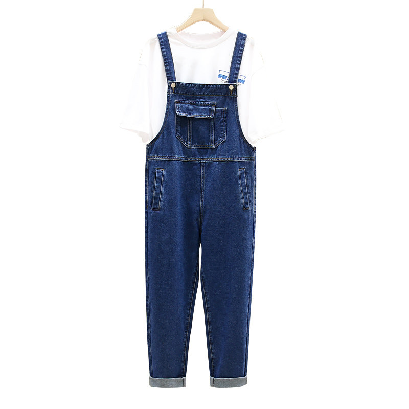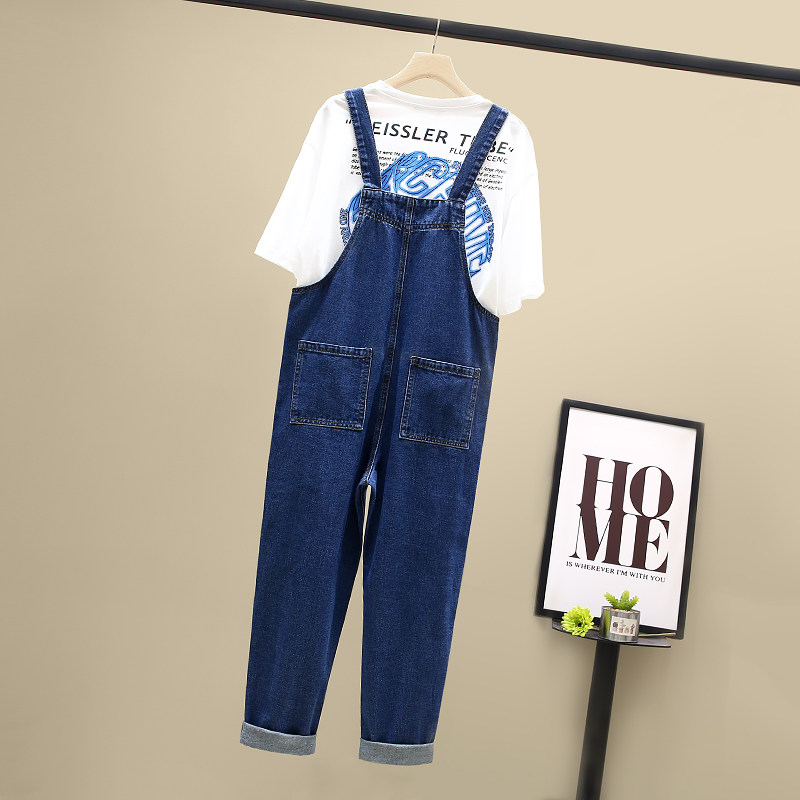 La Chapelle cute age-reducing denim holding baby bag pants female loose net red spring and autumn thin salt nine-point jumpsuit summer