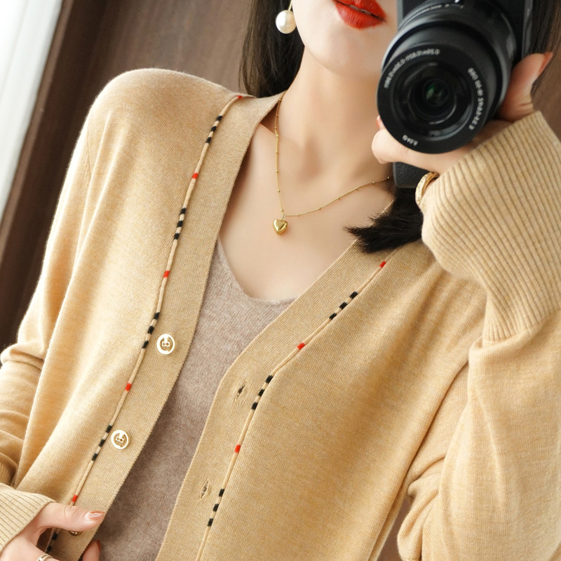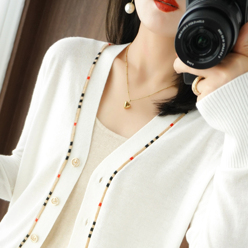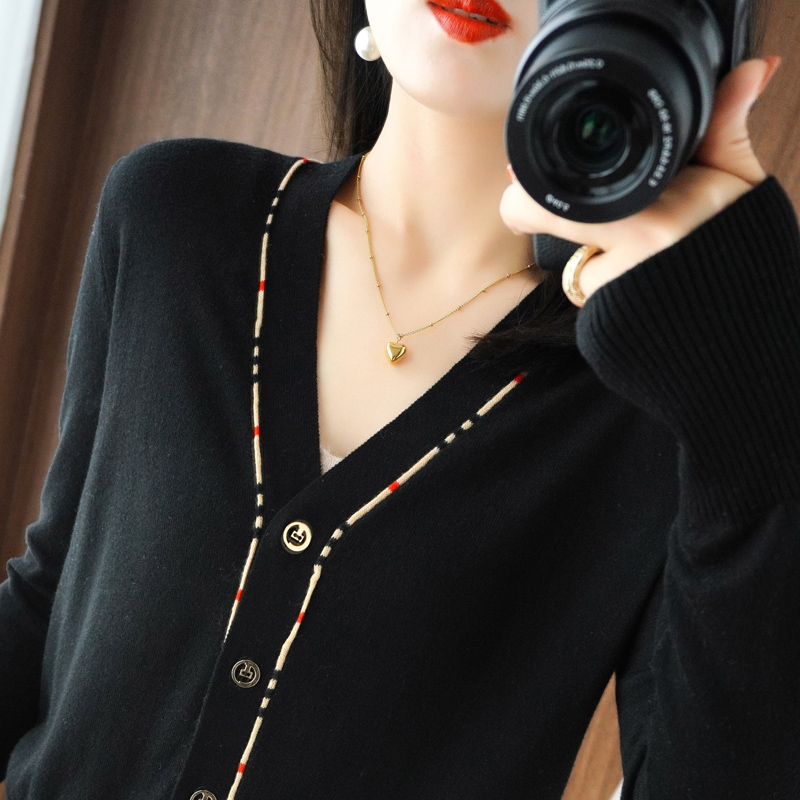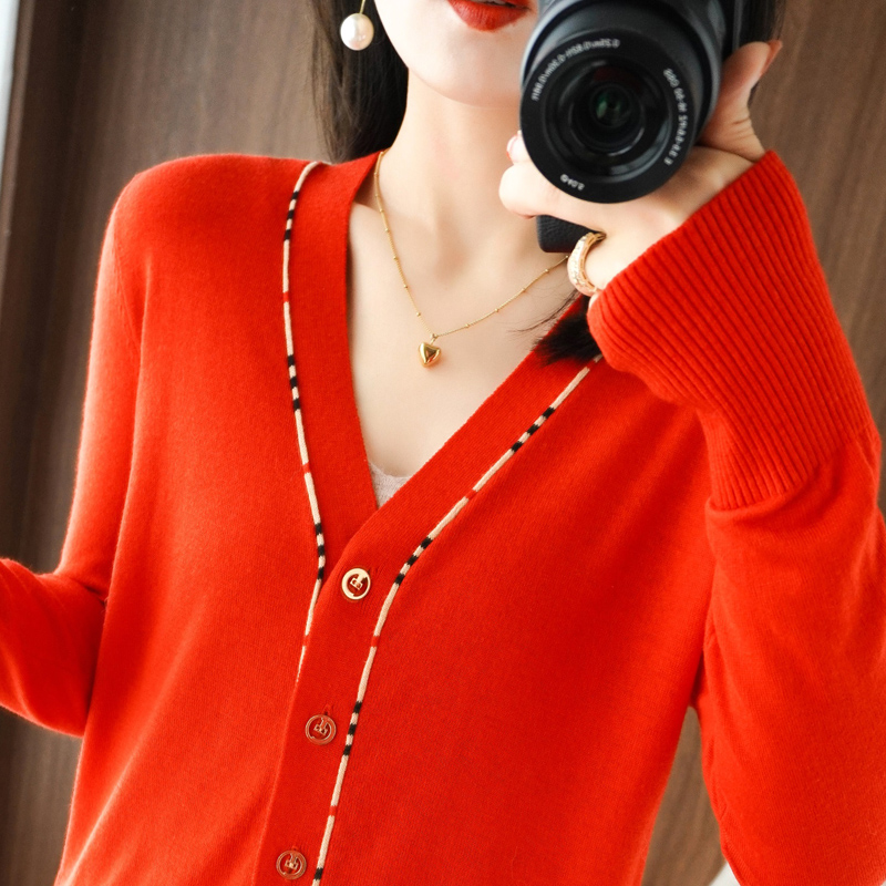 Early spring outlay knitted cardiovert woman V collar jacket new body fashion hit color short non cashmere sweaters bottom