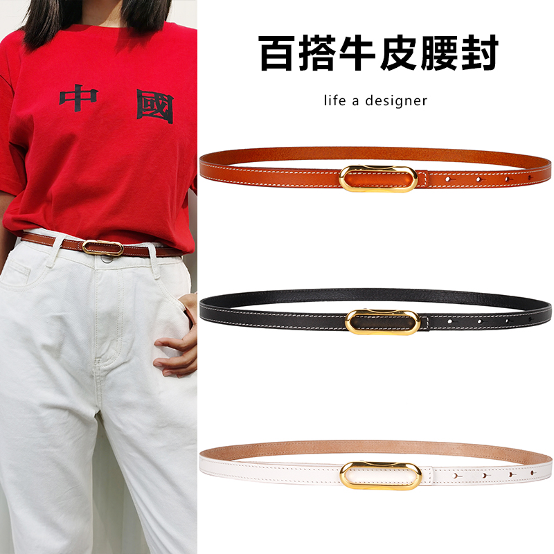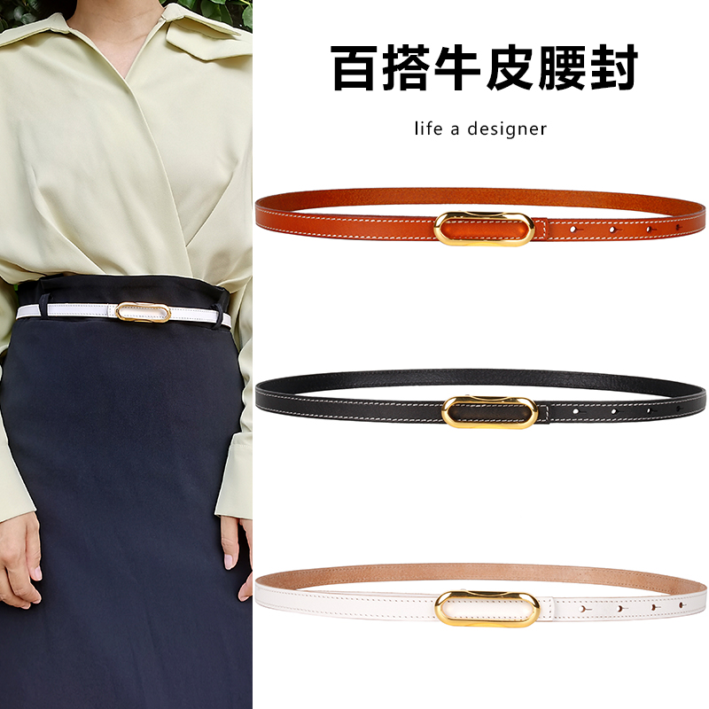 Top layer cowhide women's belt leather fashion all-match decorative waist accessories waist with dress sub small belt fine