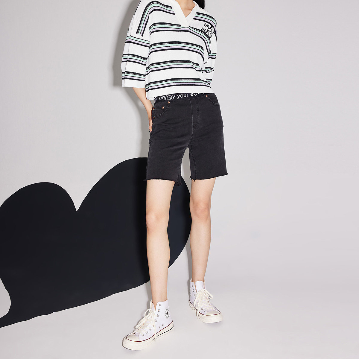 LILY autumn new women's clothing alphabet fashion raw edge shorts cycling pants jeans