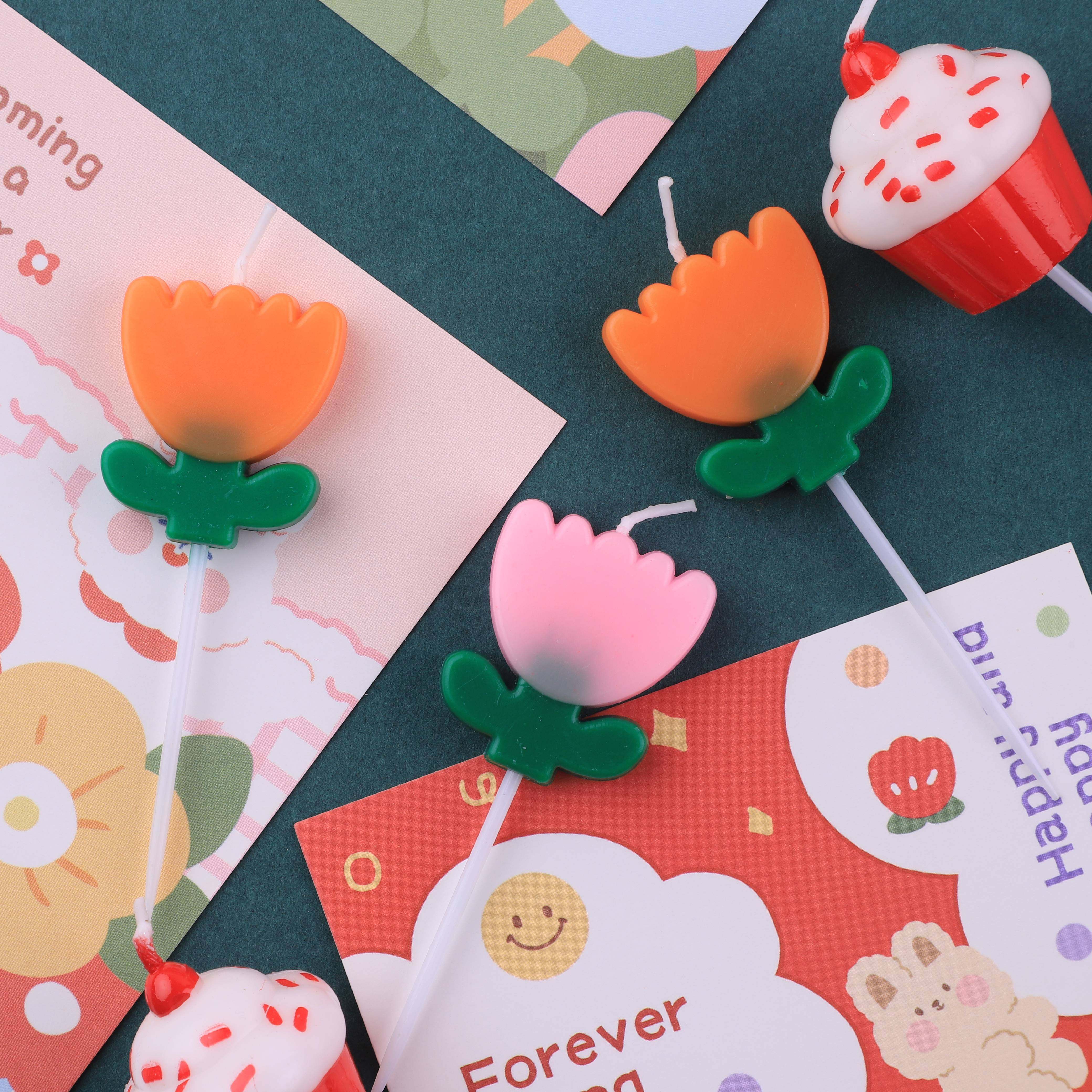 Small paper artisan INS tulip flower birthday cake decorated with candle-Taobao