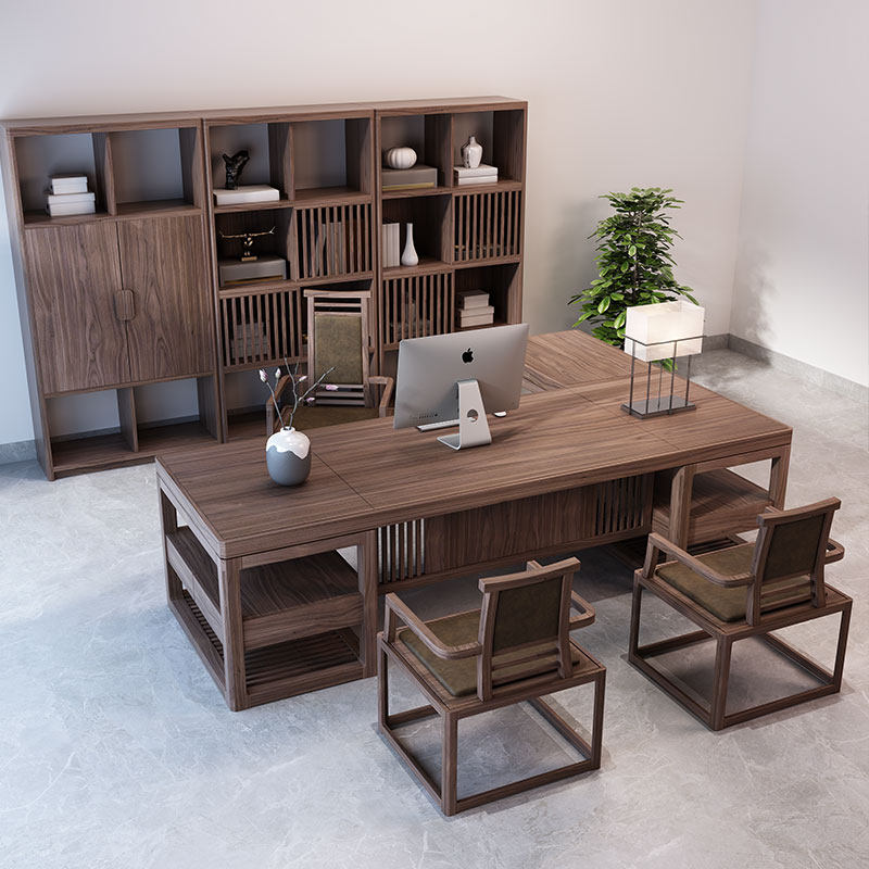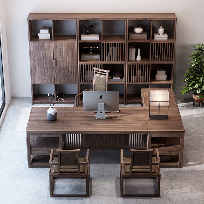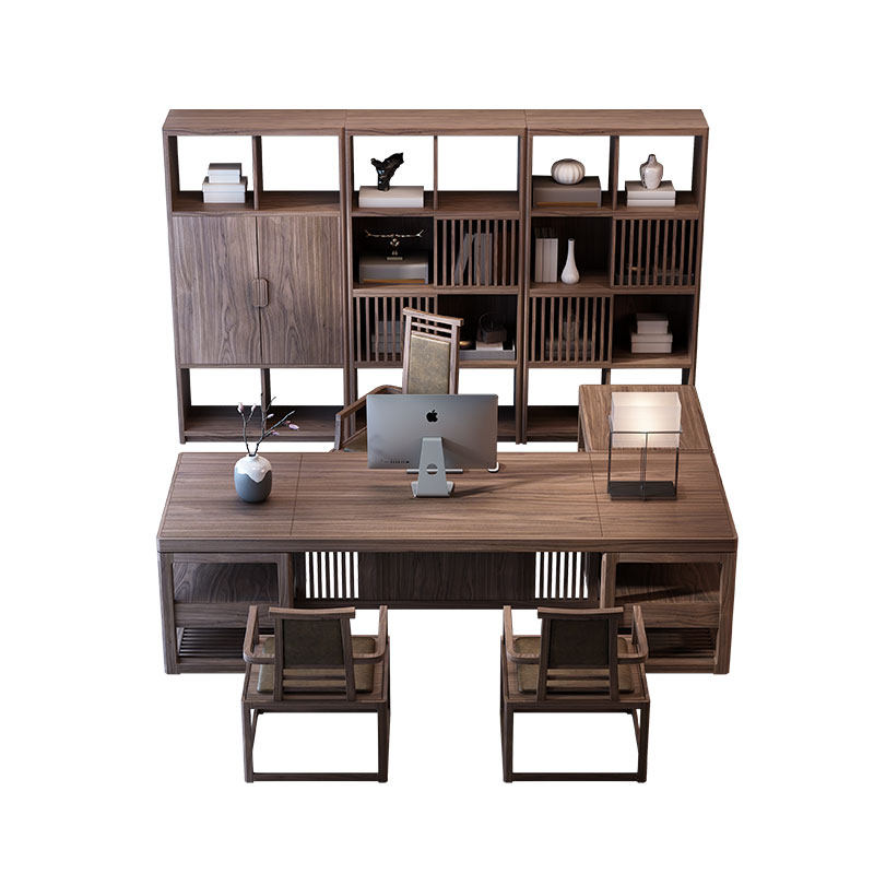 New Chinese-style office desk and chair combination all solid wood boss desk atmospheric president desk walnut executive desk office furniture