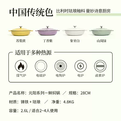 Guihe terrace enamel pot cast iron pot braised pot mommy pot 28cm home multifunctional stewed seafood pot