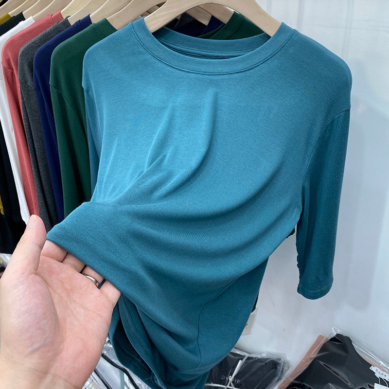Eurostock Pure Color 100 Hitch Loose 50% Middle Sleeve Mask T-shirt Woman 2021 Early autumn new foreign T-shirt thin blouse
