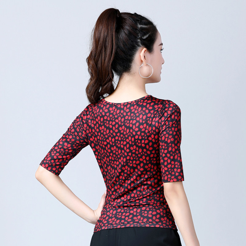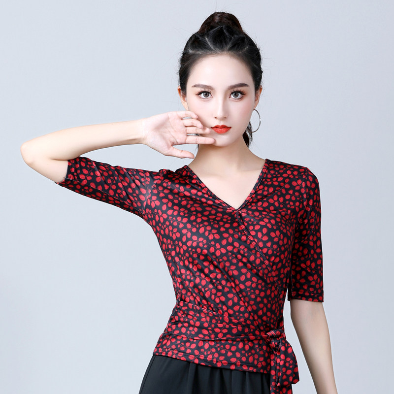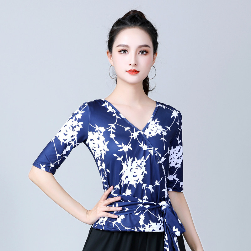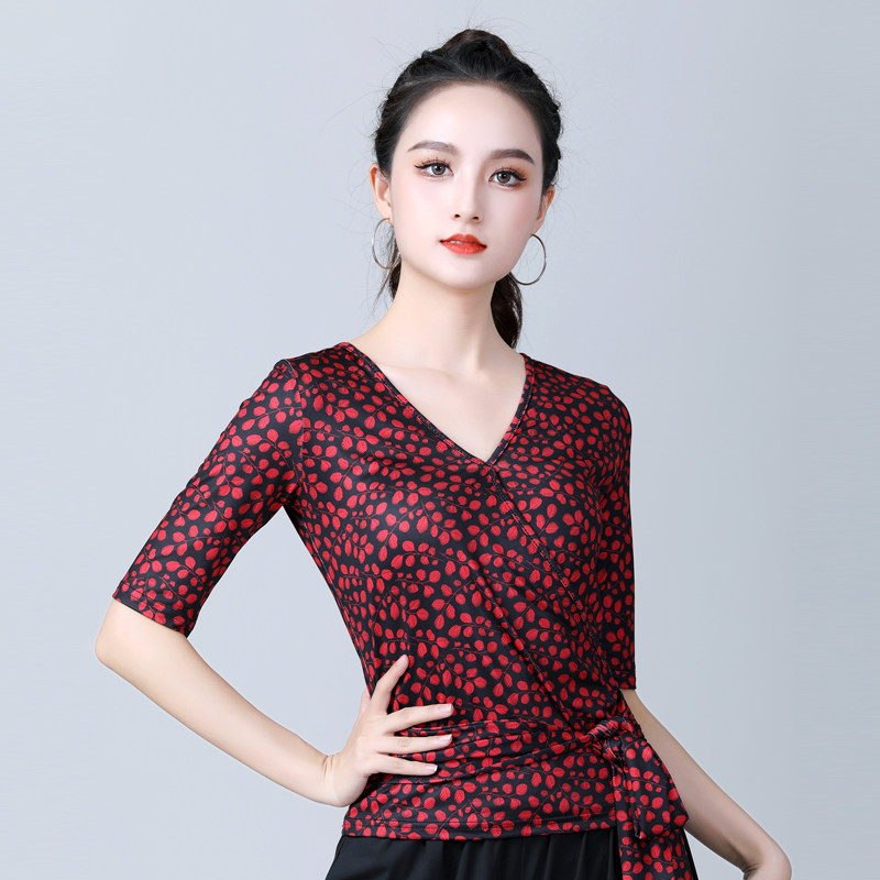 Latin dance top women's new adult modern dance dance printing mid-sleeve national standard dance clothes social dance practice clothes autumn