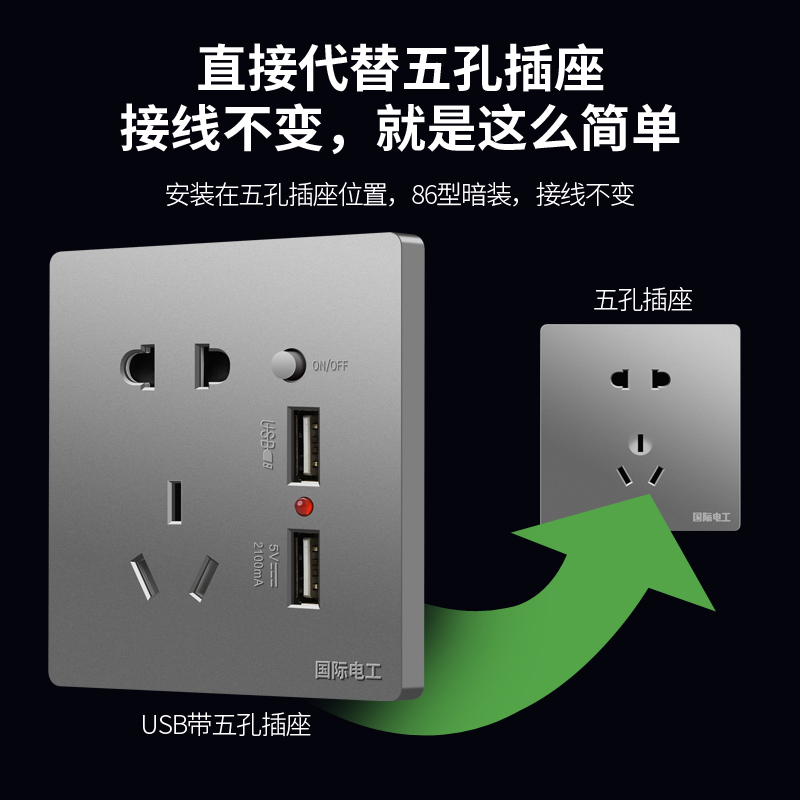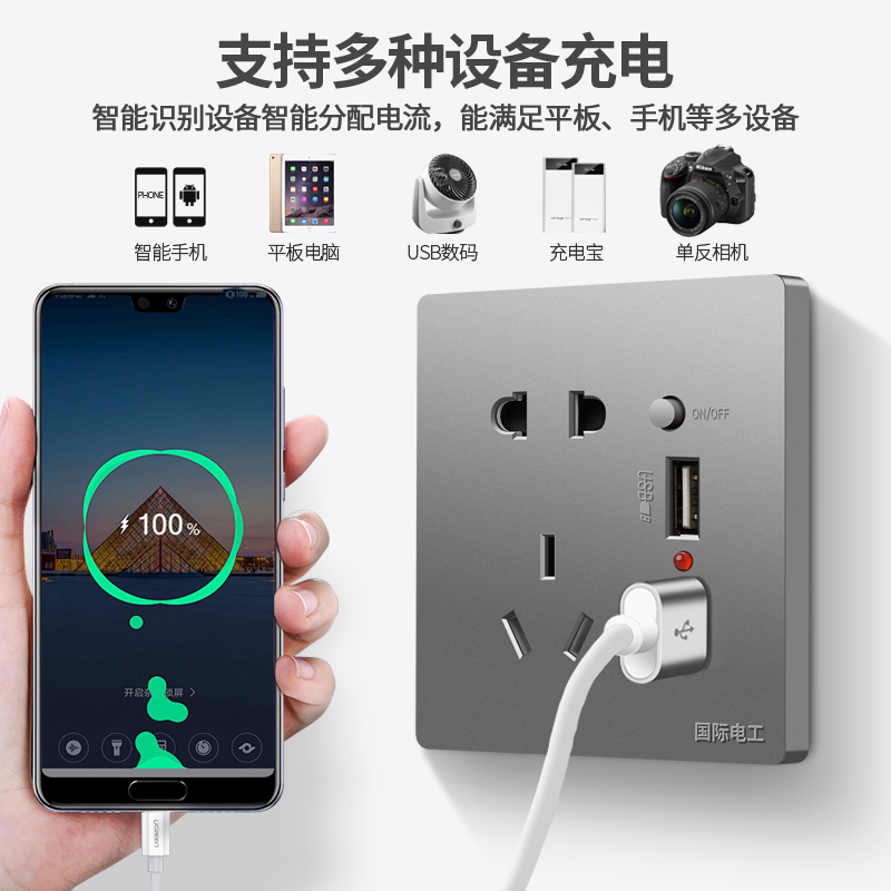 Five-hole with double usb band switch (2 1A fast charge) (large plate white) five-hole with double usb (large plate gold) five-hole double usb (large plate ash) five-hole with double usb (simple white) five
