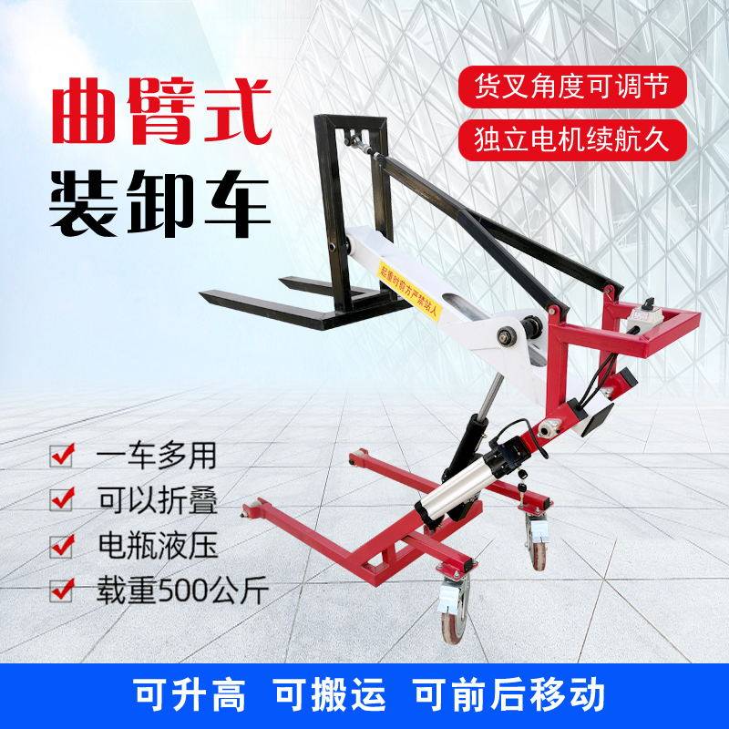 Portable electric pile high machine 0 5 ton small lithium battery crank-arm loading and unloading warehouse carrying hand-push hydraulic lifting car