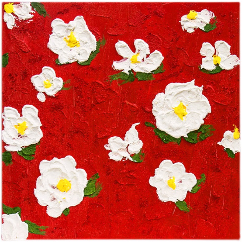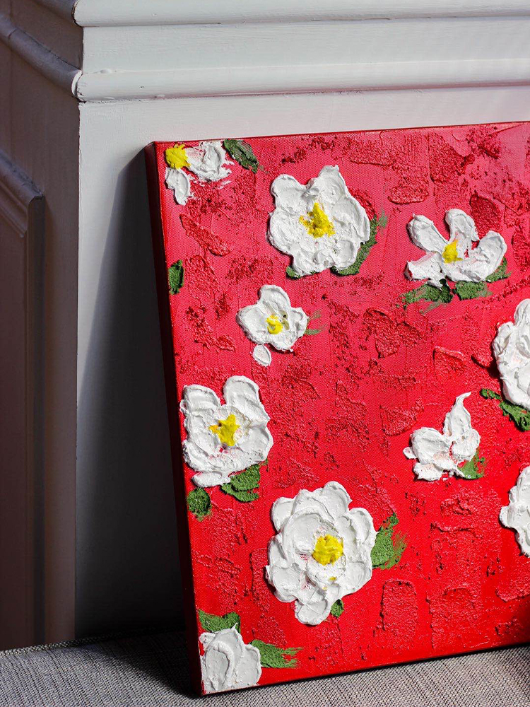 Pure hand-painted oil painting exhibition camellia thick color texture modern light luxury side cabinet living room porch red three-dimensional decorative painting