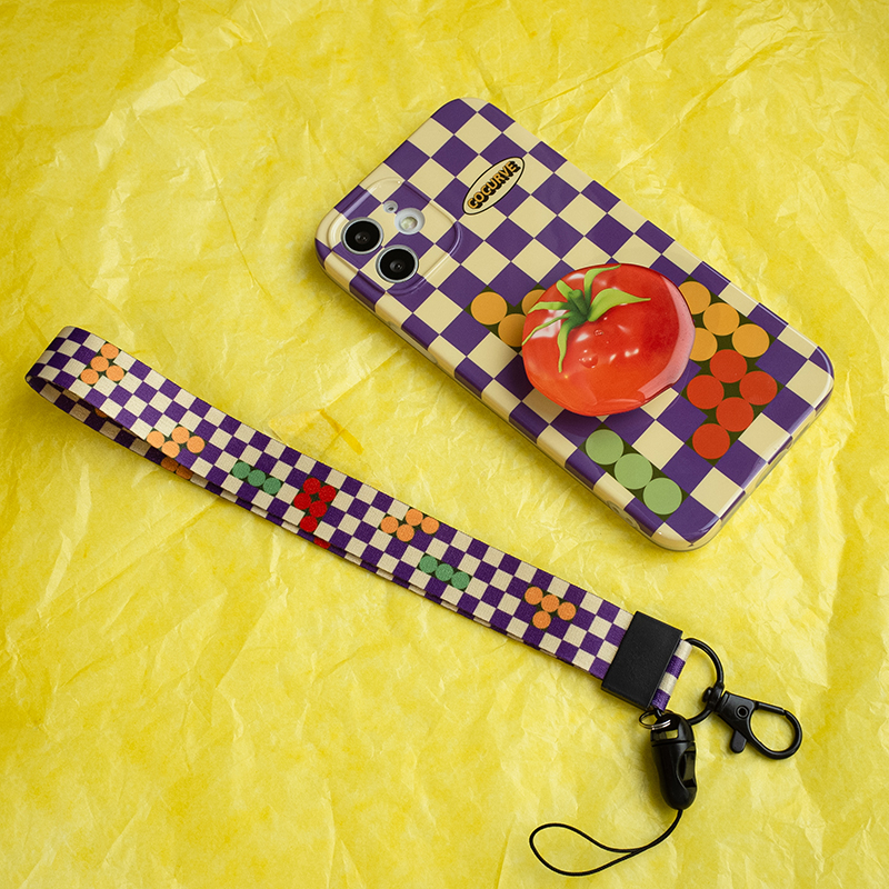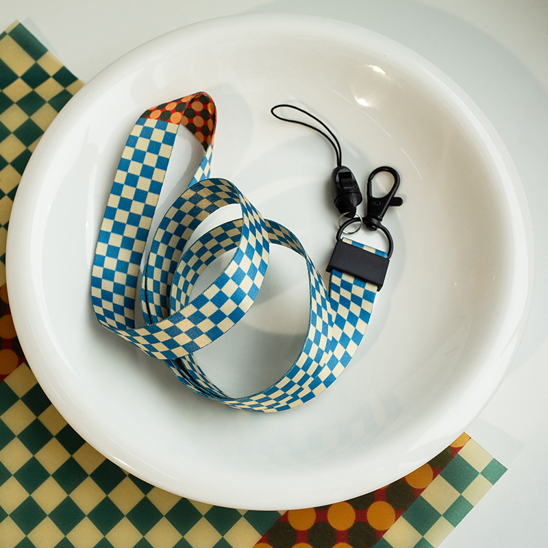 Shell Trial Original Design Collision Color Retro Plaid Cell Phone Hanging Rope Long Version Short Universal Little Crowdart Hand Decoration