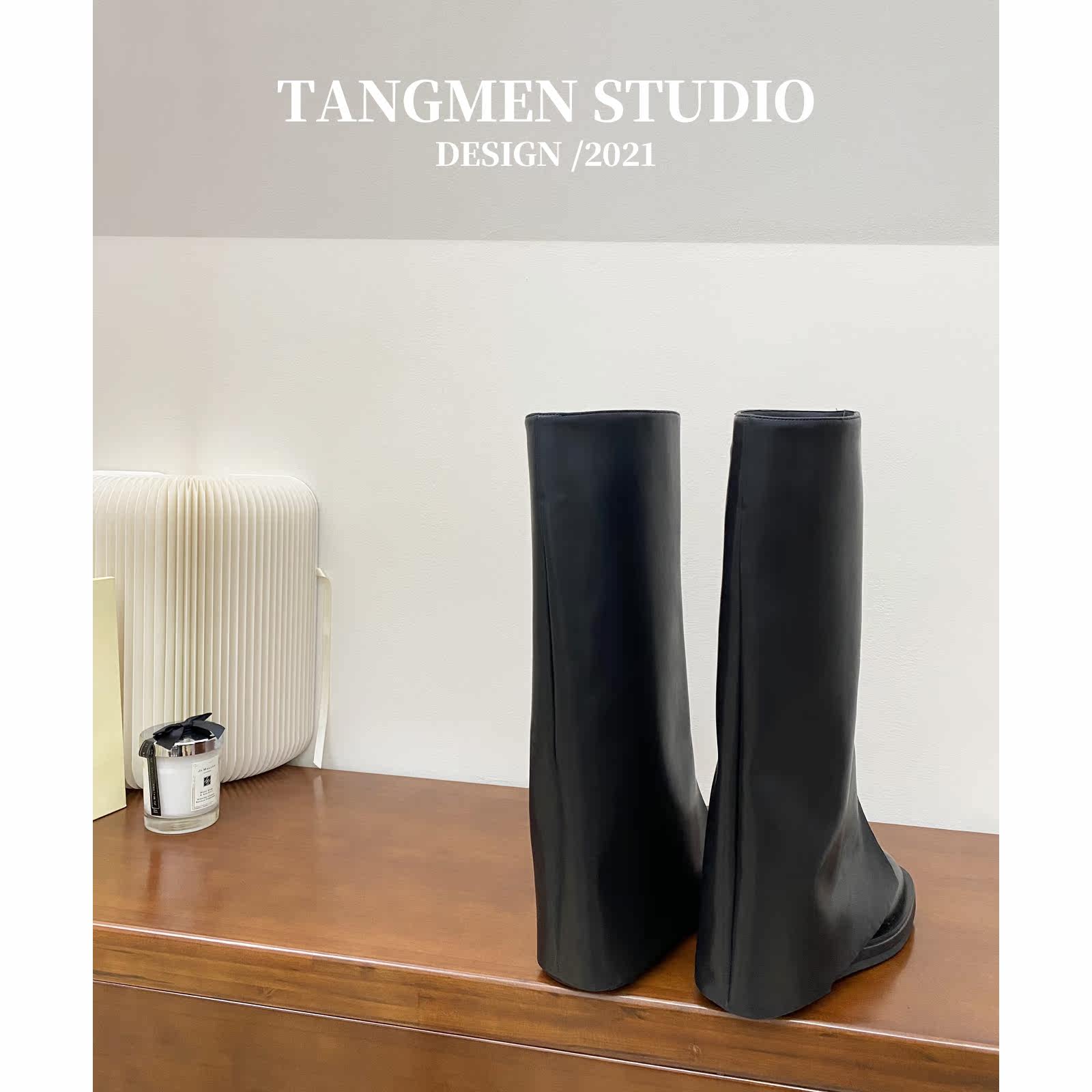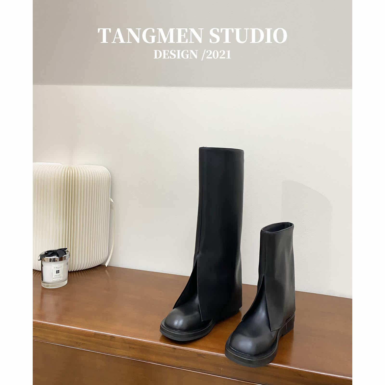 Short boots with long boots on the ground.