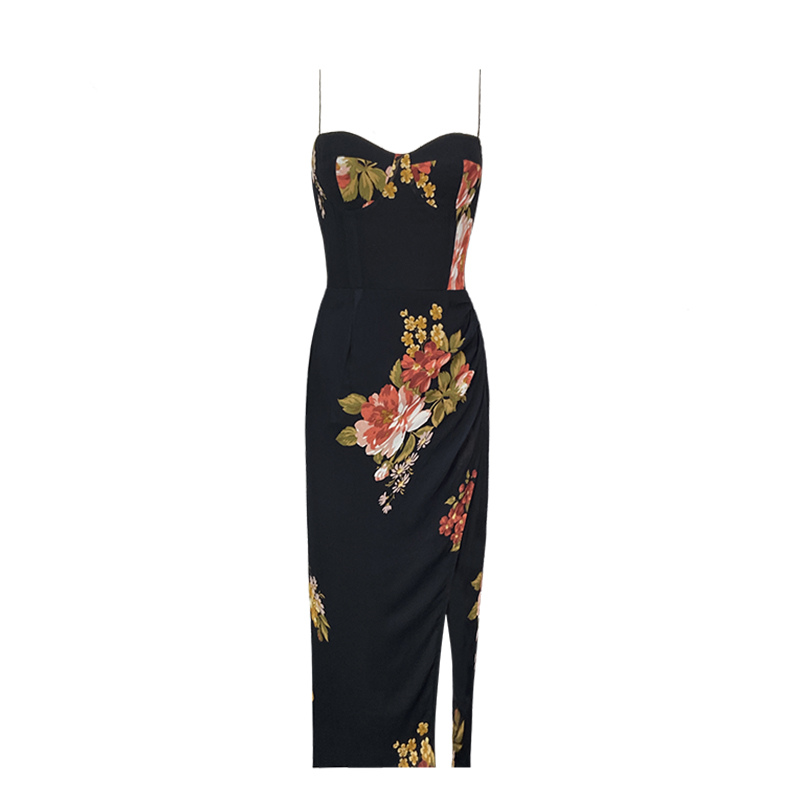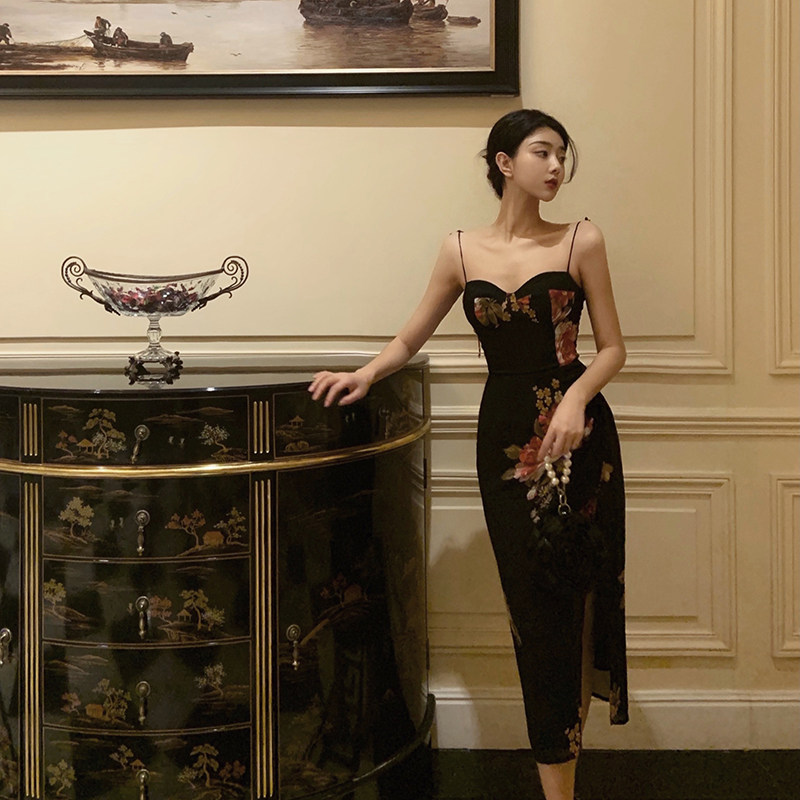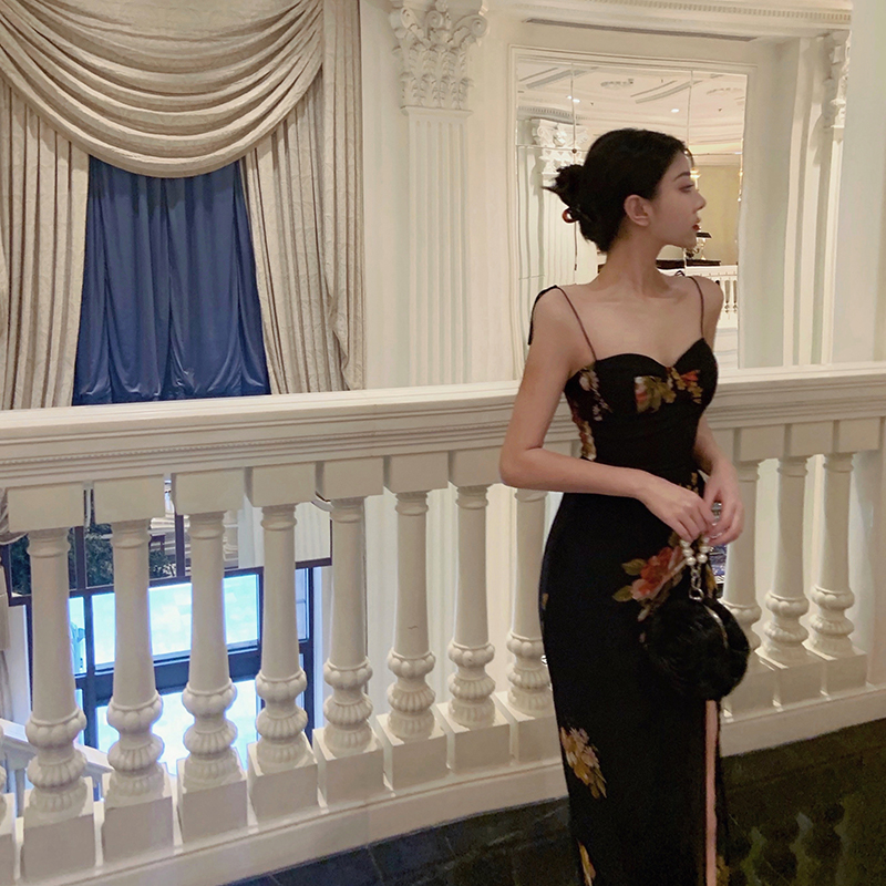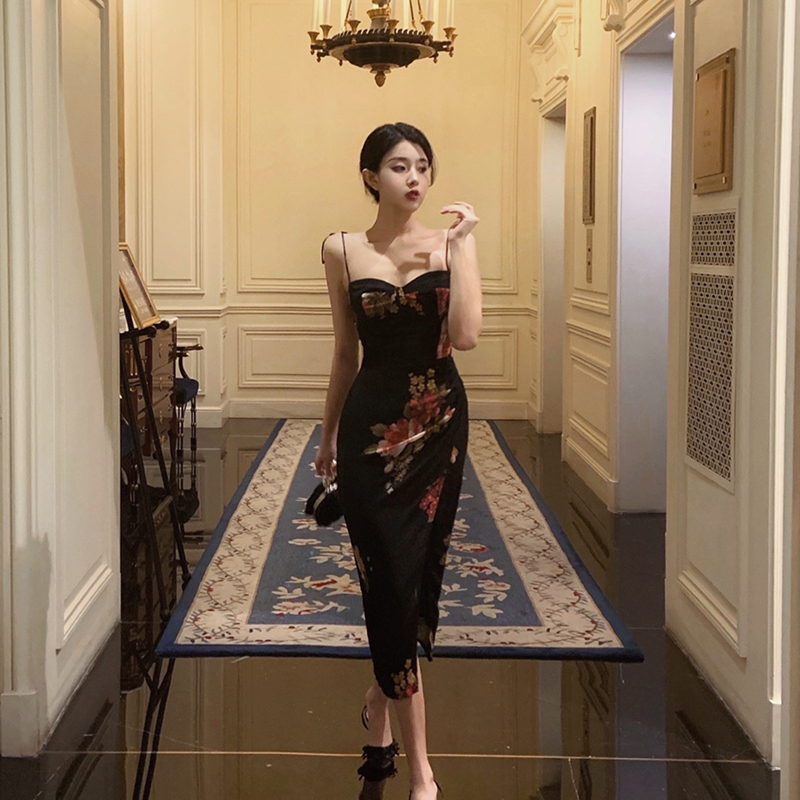 Slip dress temperament sexy pack buttock skirt in summer new retro waist slim fork long skirt