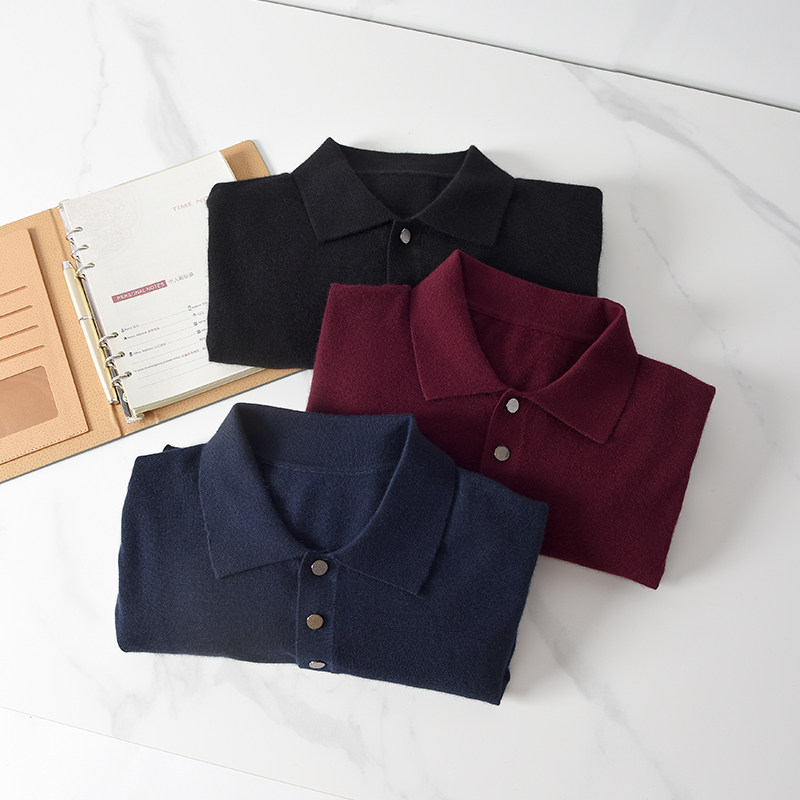 Fall/Winter 2022 New 100% Cashmere Worsted Sweater Men's Junior Casual Polo Collar Knit Top
