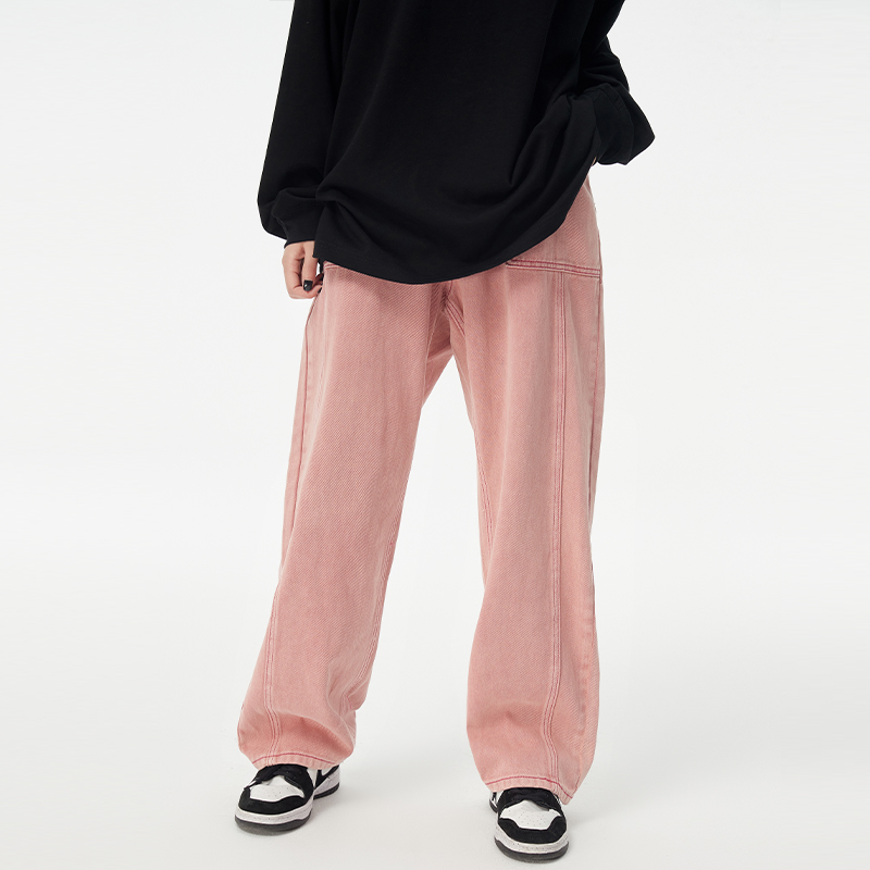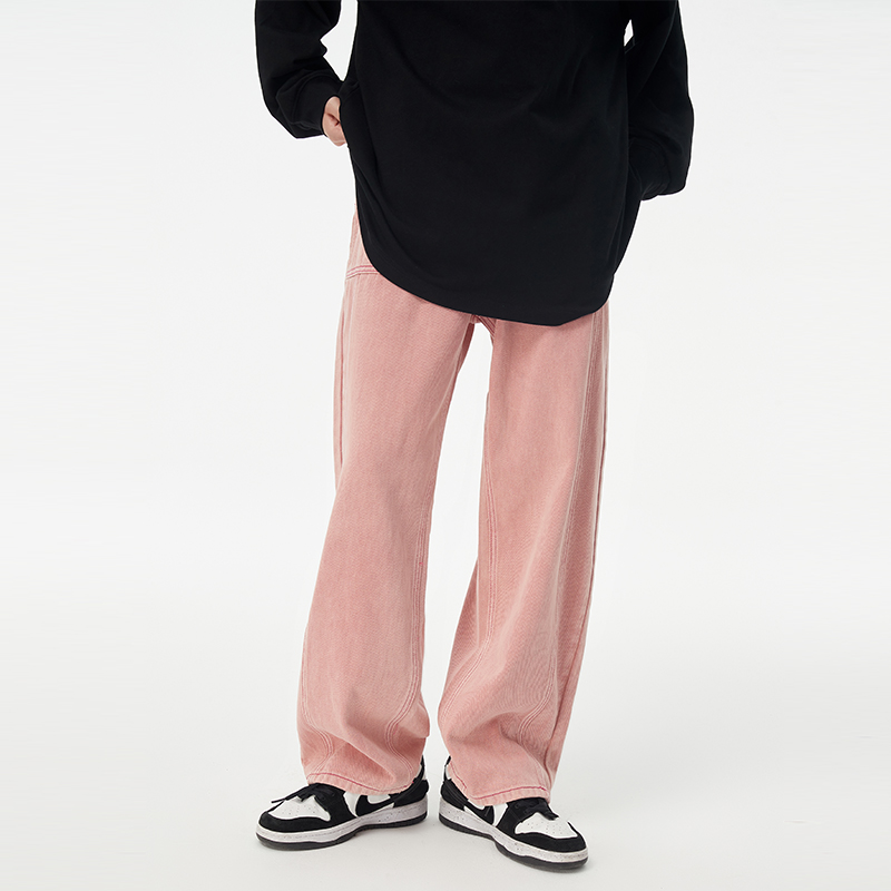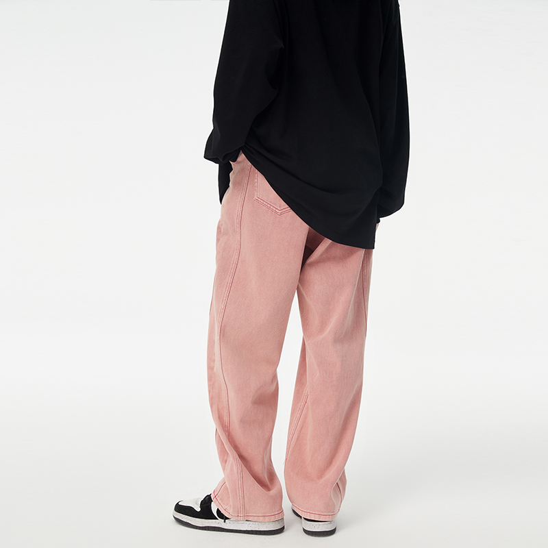 (WUT official store) texture aesthetic series Vintage washed stir-fried color straight pink jeans men's and women's pants