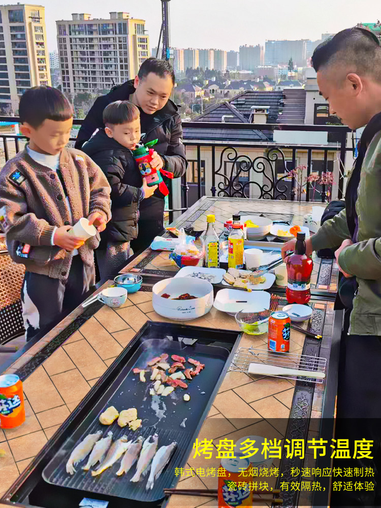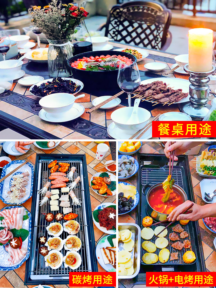 Outdoor barbecue table courtyard balcony barbecue dual-purpose charcoal grilled electric grill household outdoor dining table and chairs long table wrought iron round table