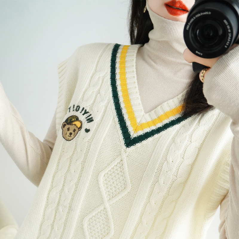 V-collar knitting horse-coated coat outside the College Ferry Retro Short Clothes Clothing Age