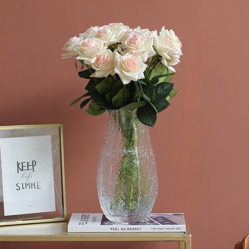 BX Water Corrugated Transparent Glass Vase Home Living Room Drying Flowers Flower Arrangement Decoration Pendulum Decoration Modern Minima Table Floral