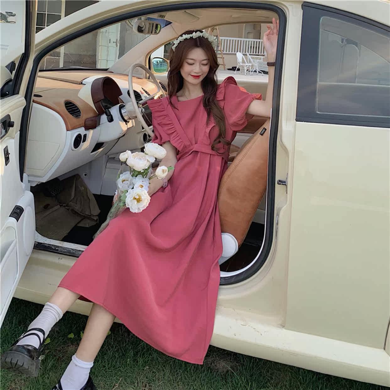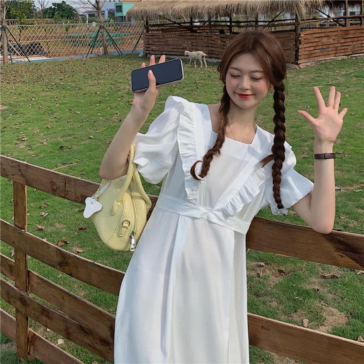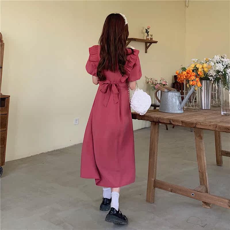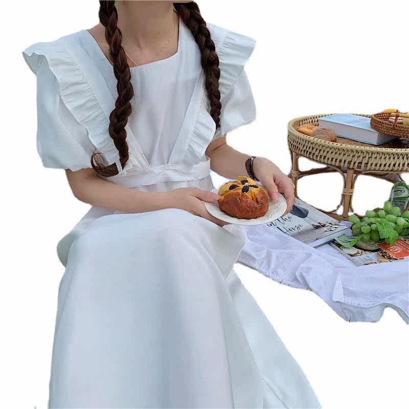 Maternity dress summer French square neck dress women's summer new loose ruffled detachable two-piece long skirt