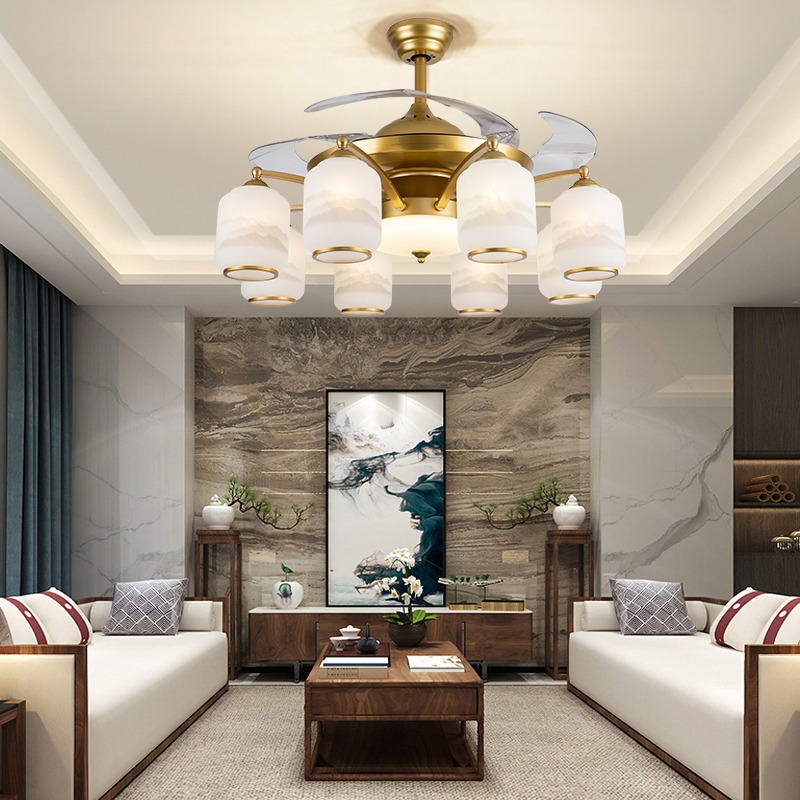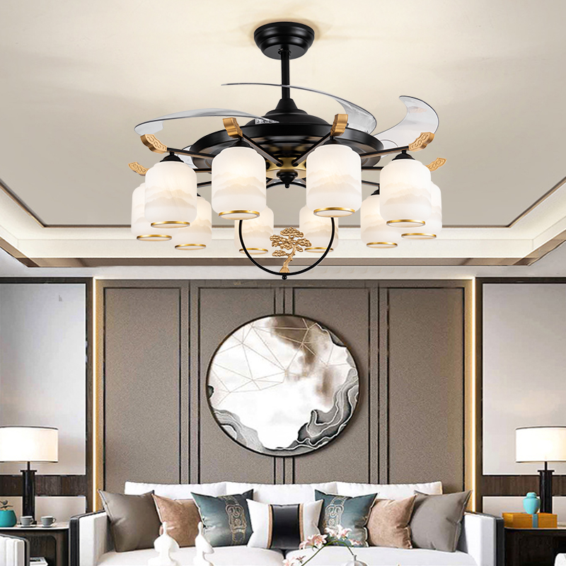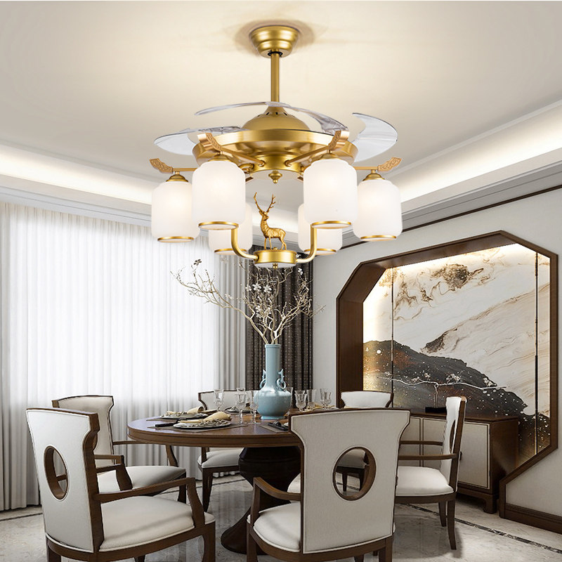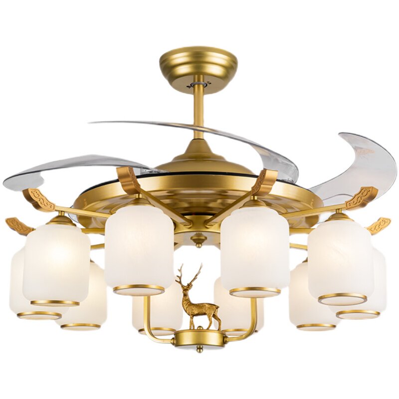 New Chinese Living Room Ceiling Fan Lamp Modern Light Lavish Dining Room Ceiling Fan Light Invisible Ceiling Fan Lamp Home Bedroom Fan Chandelia