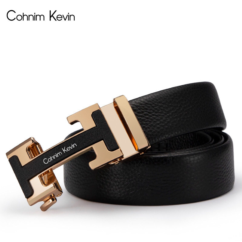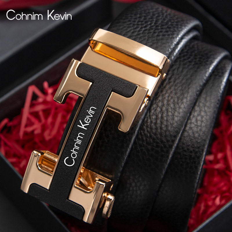 Cohnim Kevin belt male leather 100 lap automatic buckle Young pants with head layer Bull Leather Men's Belt Tide