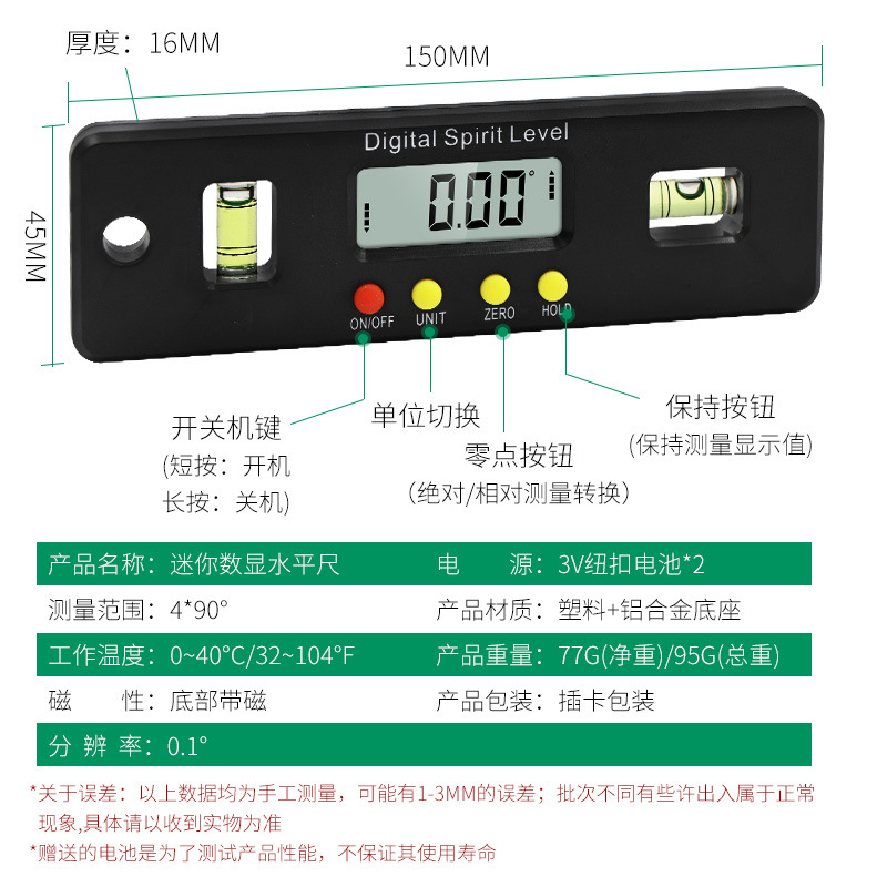 Digital display horizontal ruler high precision renovation leaning ruler strong magnetic gradient ruler vertical level gradienter angle ruler calliper