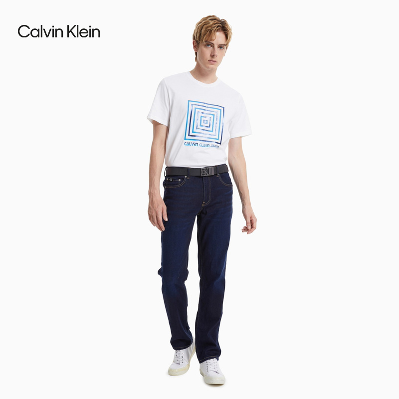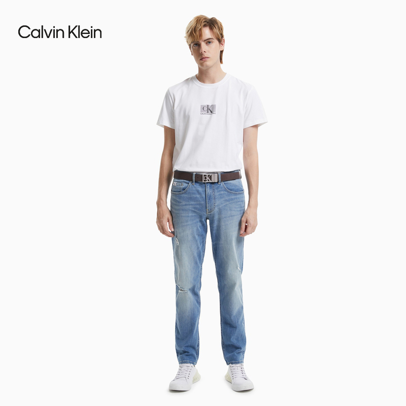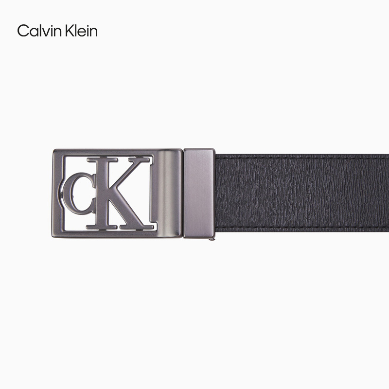(pre-sale) CK Jeans Men's business Double face with metal hollowed-out LOGO cow leather buckle hole belt HC0652