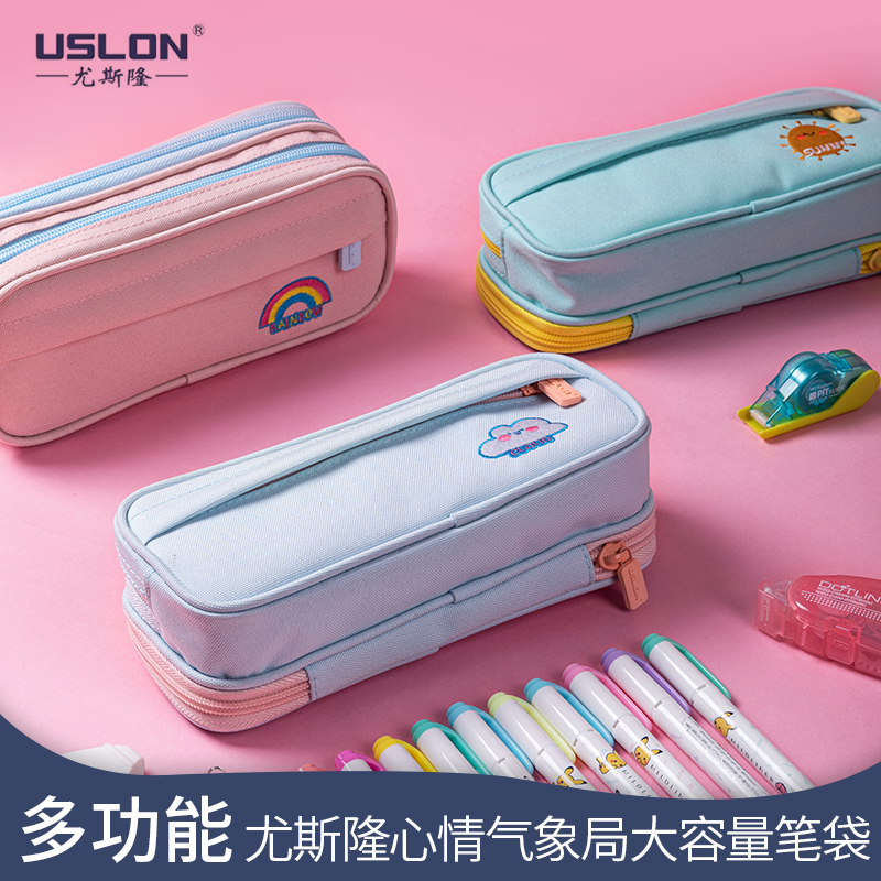 USLONN YuSloan multifunction stationery bag student with a classifiable multilayer pencil bag solid abrasion-proof containing bag