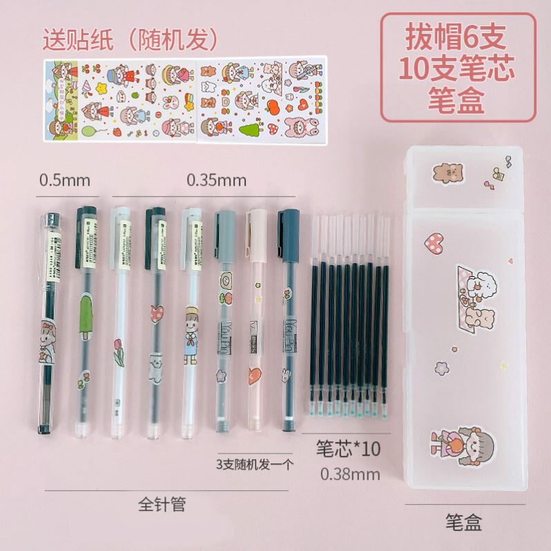 F47-Pull Cap 6 Pens 10 Refills Pen Case