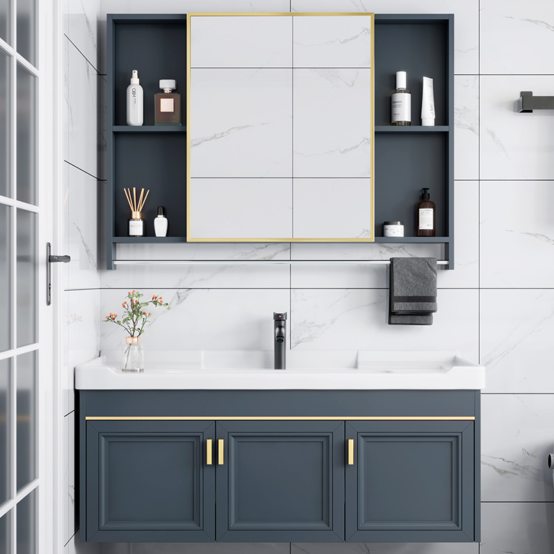 Space Aluminum Bath Room Cabinet Composition Ceramic Integrated Face Basin Wash Toiletries Makeup Room Hand Wash Washbasin Cabinet Modern Brief
