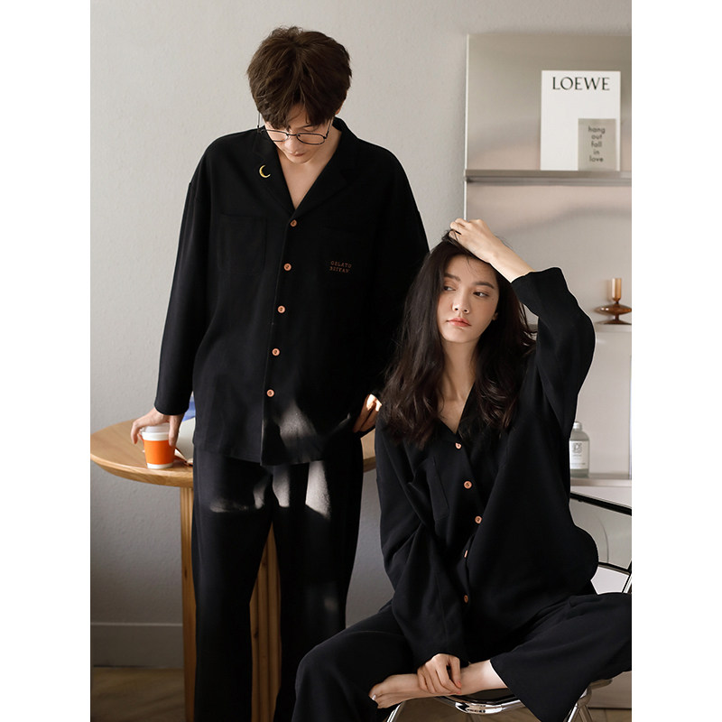 Couples pyjamas women's spring autumn season pure cotton long sleeves Fashion capers autumn and winter home clothes big size men's black two sets