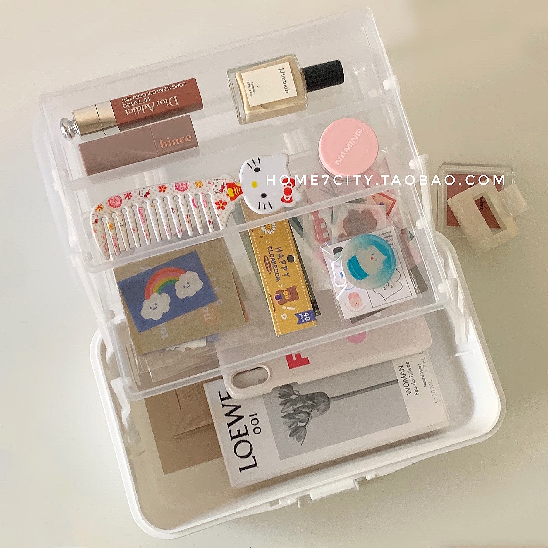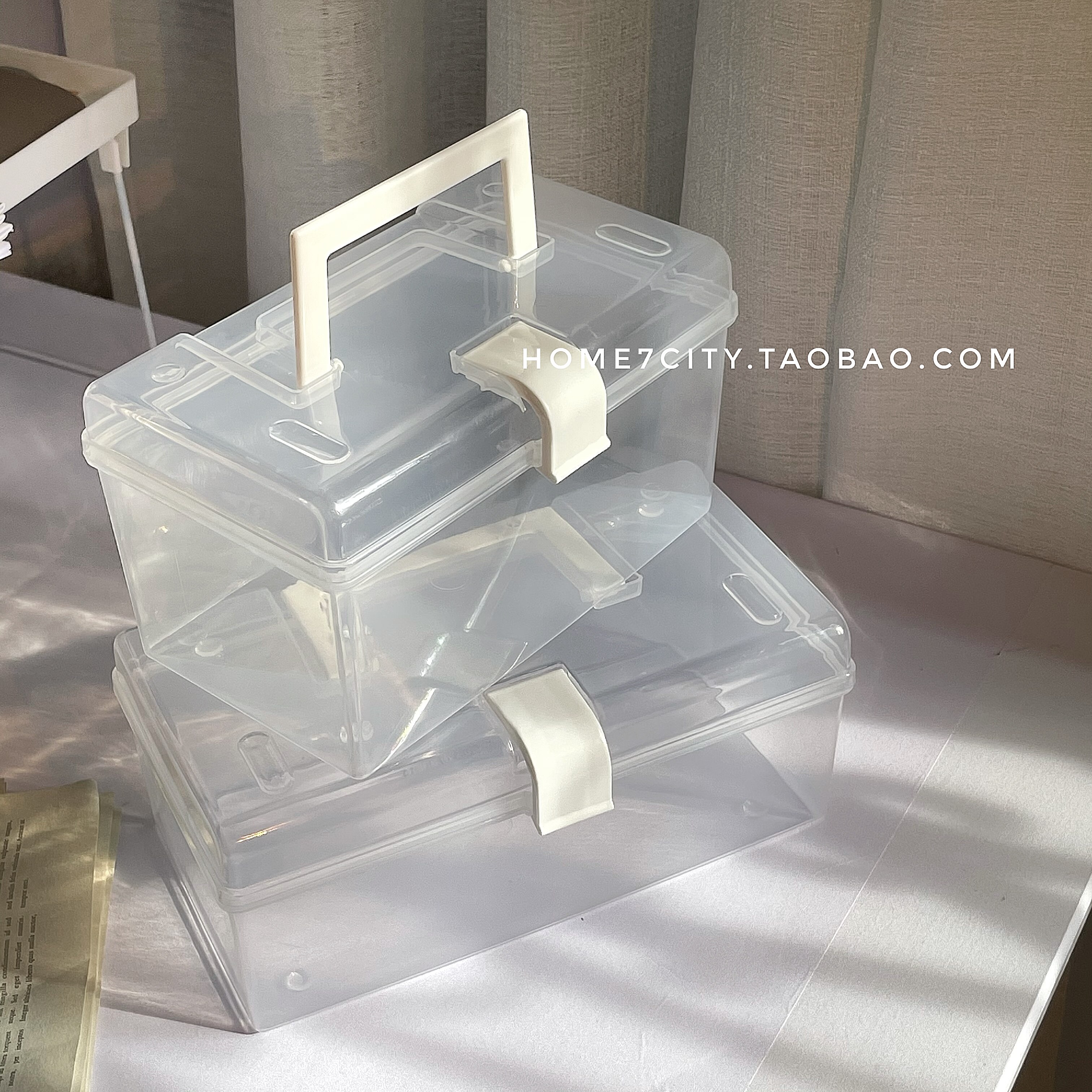 ins transparent large portable storage box three-layer large-capacity sundries storage Japanese art toolbox plastic box