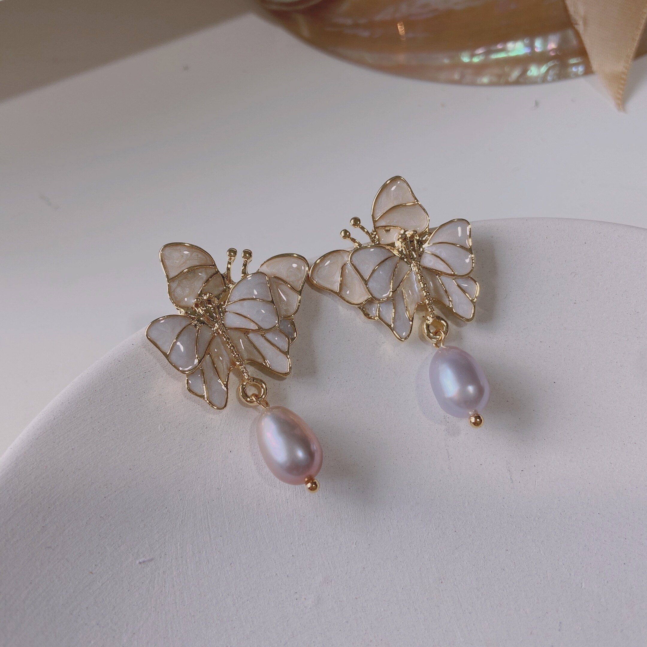 Oil painting color White pearl oil painting color White pearl 925 silver needle oil painting color Purple pearl oil painting color Purple pearl 925 silver needle original design! Has applied for a patent collection to buy a small gift - gift box packaging
