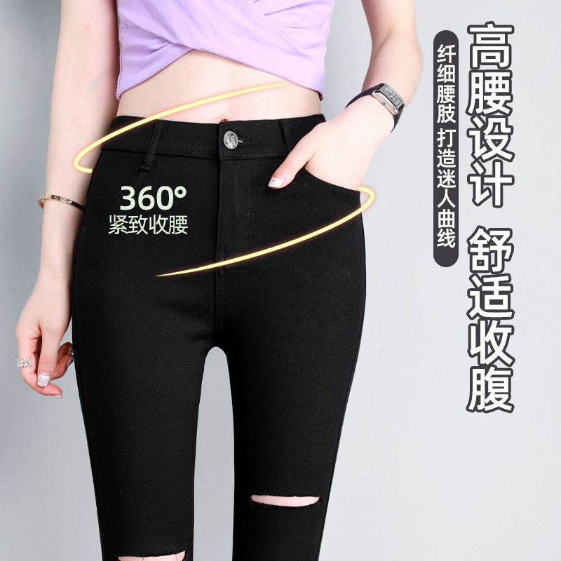 Breaking Hole inside lap pants woman outside wearing summer thin style tight waist elastic 90% black magic pencil small feet black pants