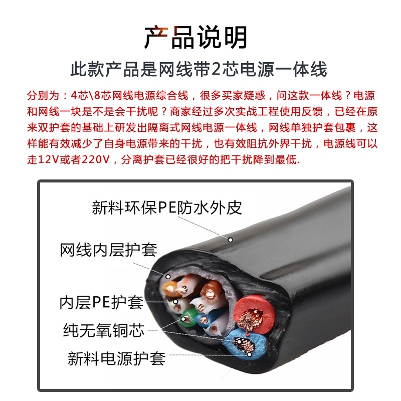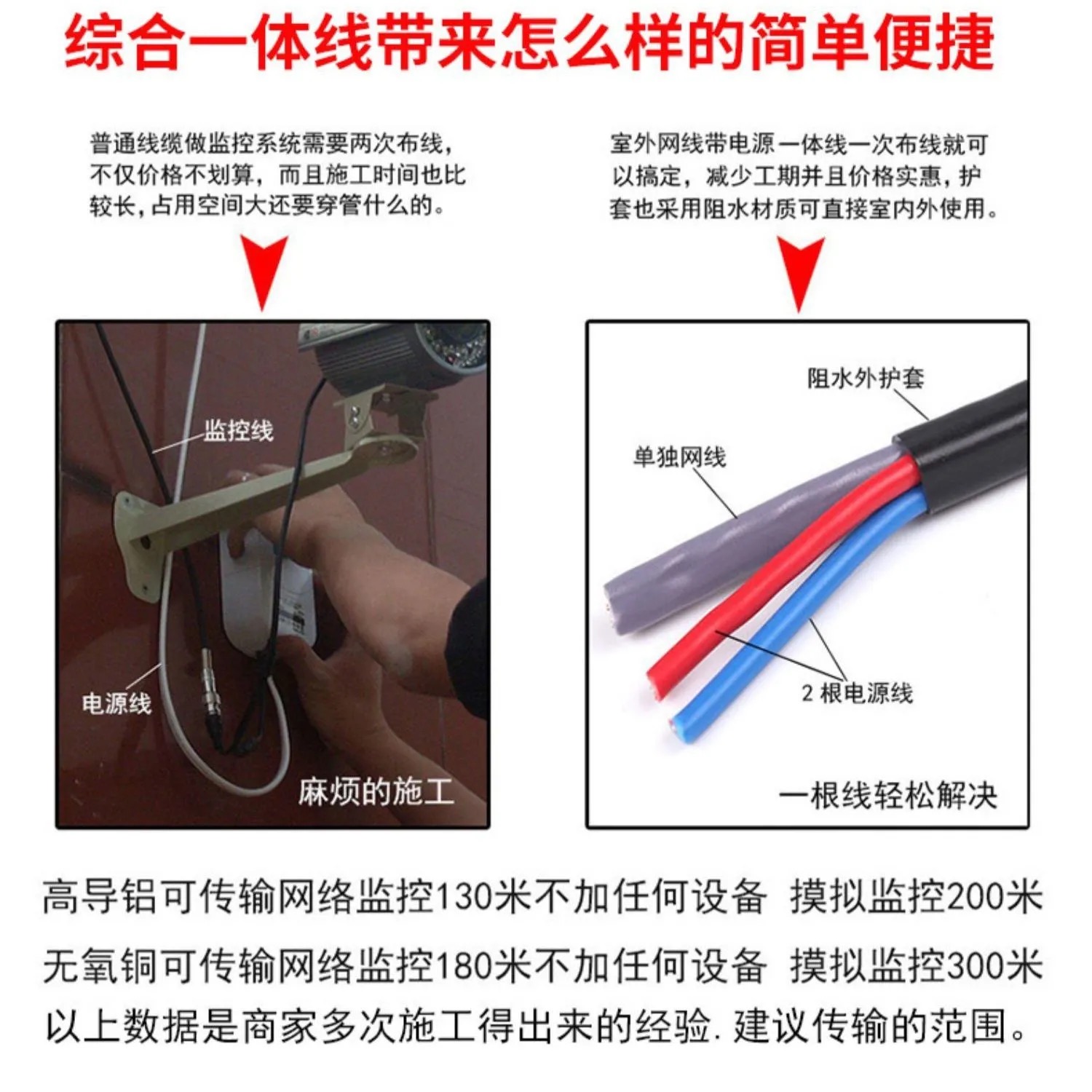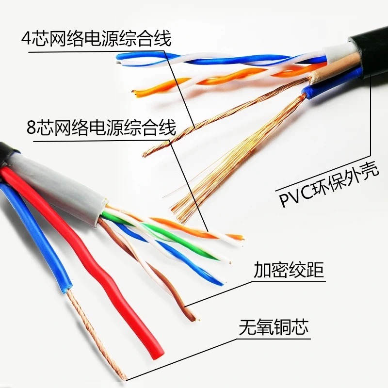 Monitoring line with power supply integrated line outdoor network line oxygen-free copper poe transmission line 4-core 8-core network integrated line