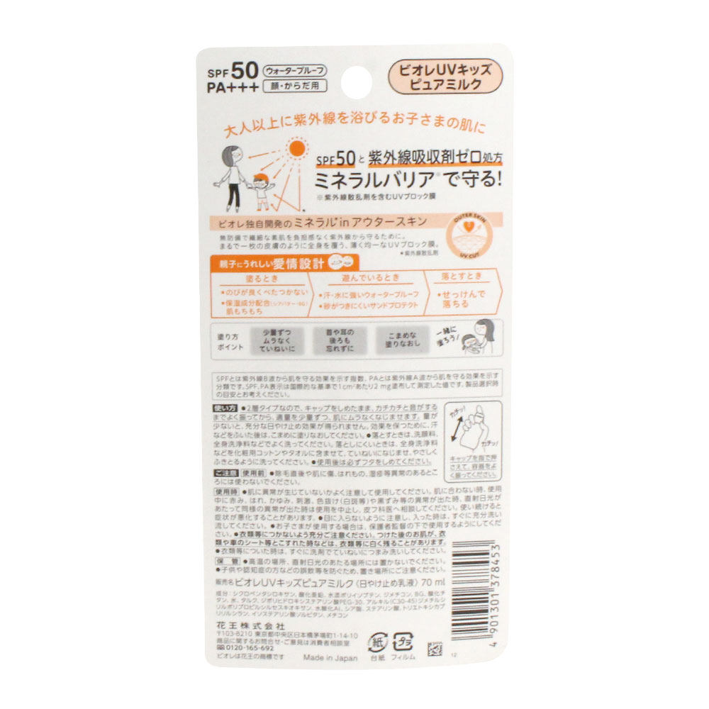 Japanese flower king Biore Bilu Child sensitive muscle mild and refreshing sunscreen 70ml SPF50