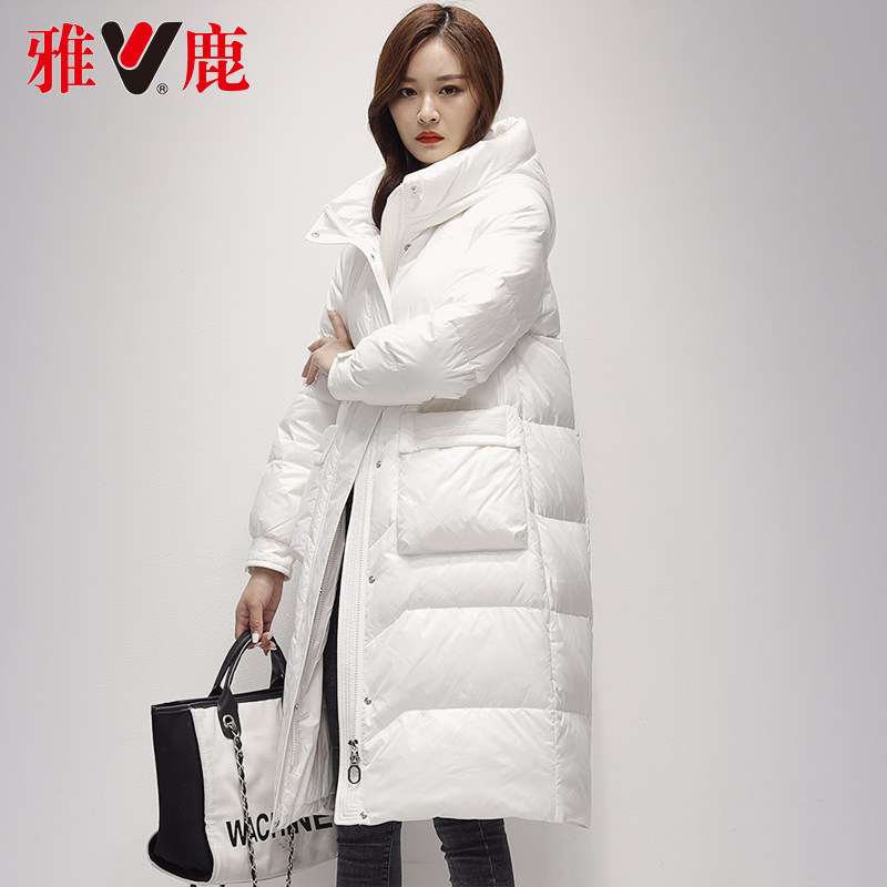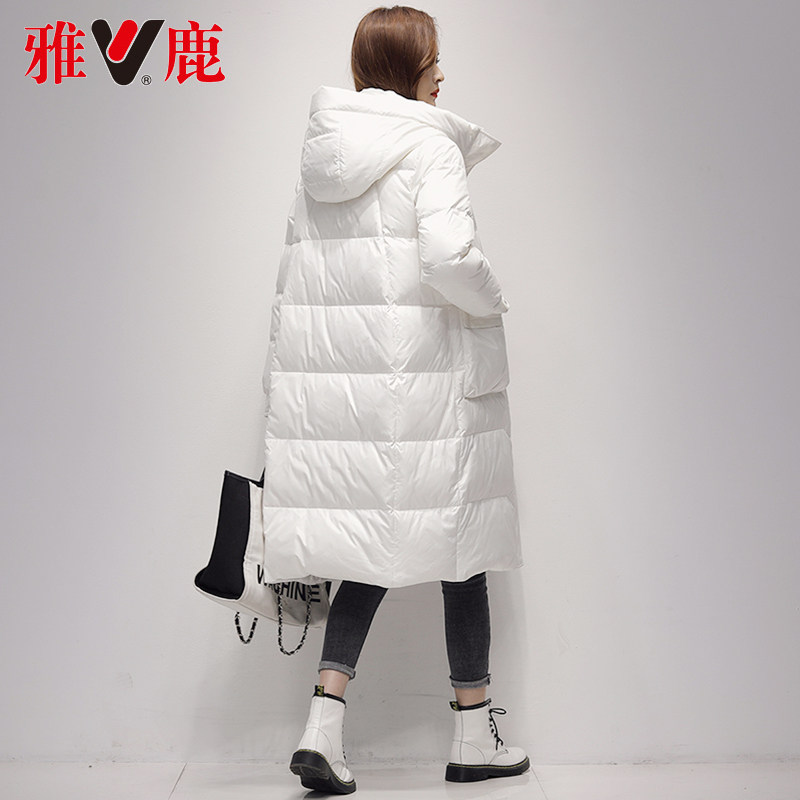 Jadeer white down jacket Women's medium Long version 2021 New even cap Fashion casual loose Warm Jacket High-end